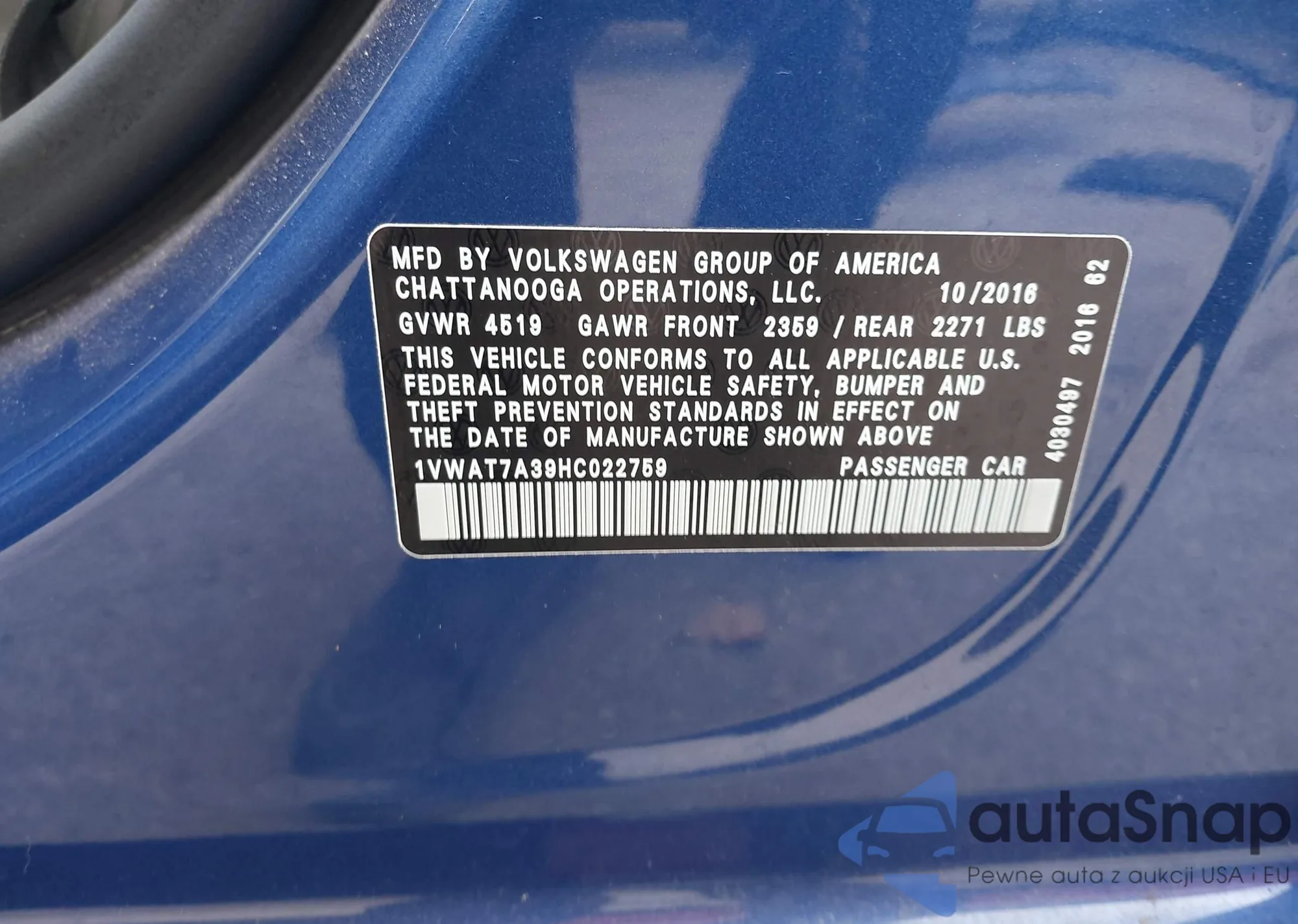 • VIN 1VWAT7A39HC022759