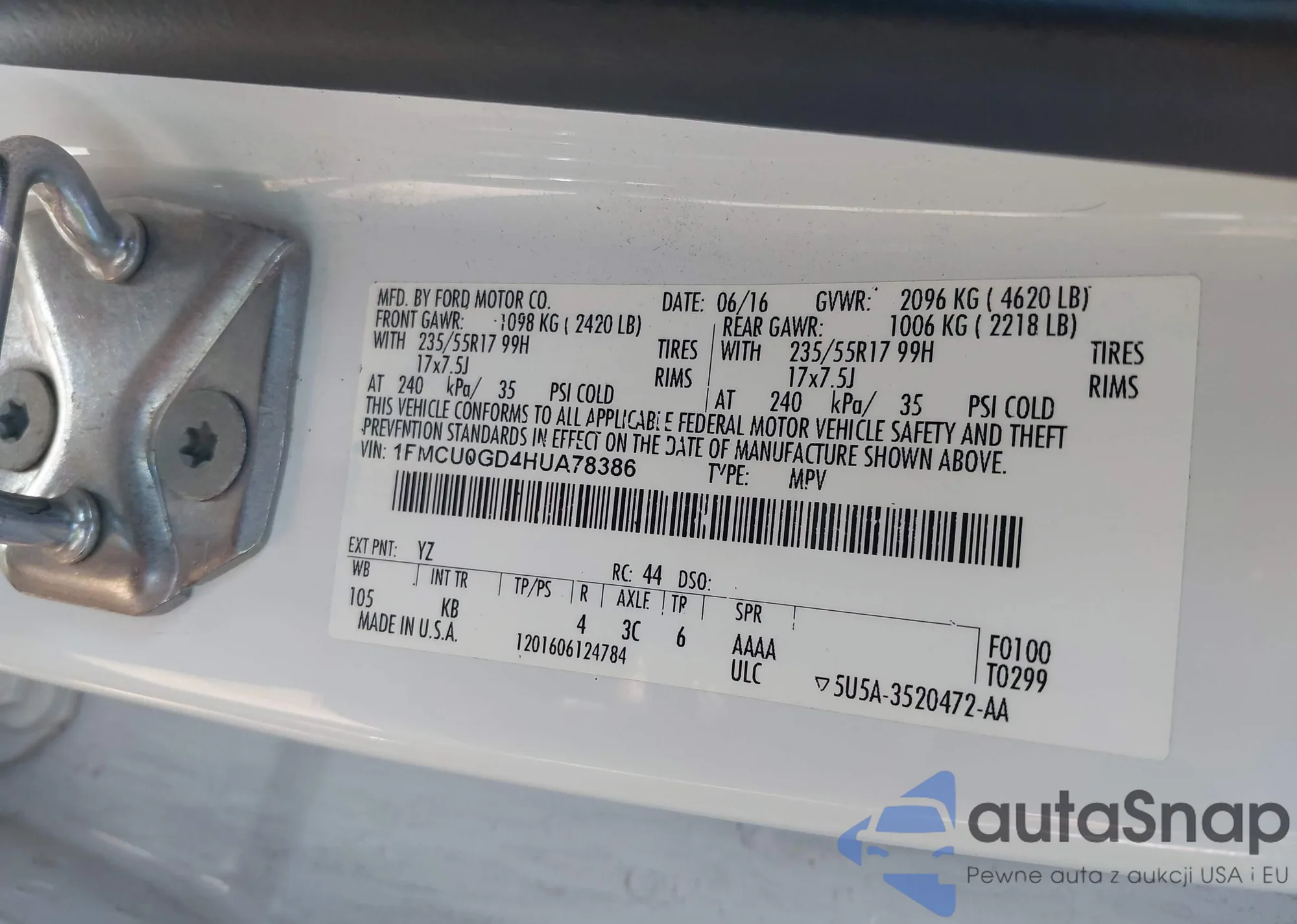 LOT: 43191493 VIN: 1FMCU0GD4HUA78386