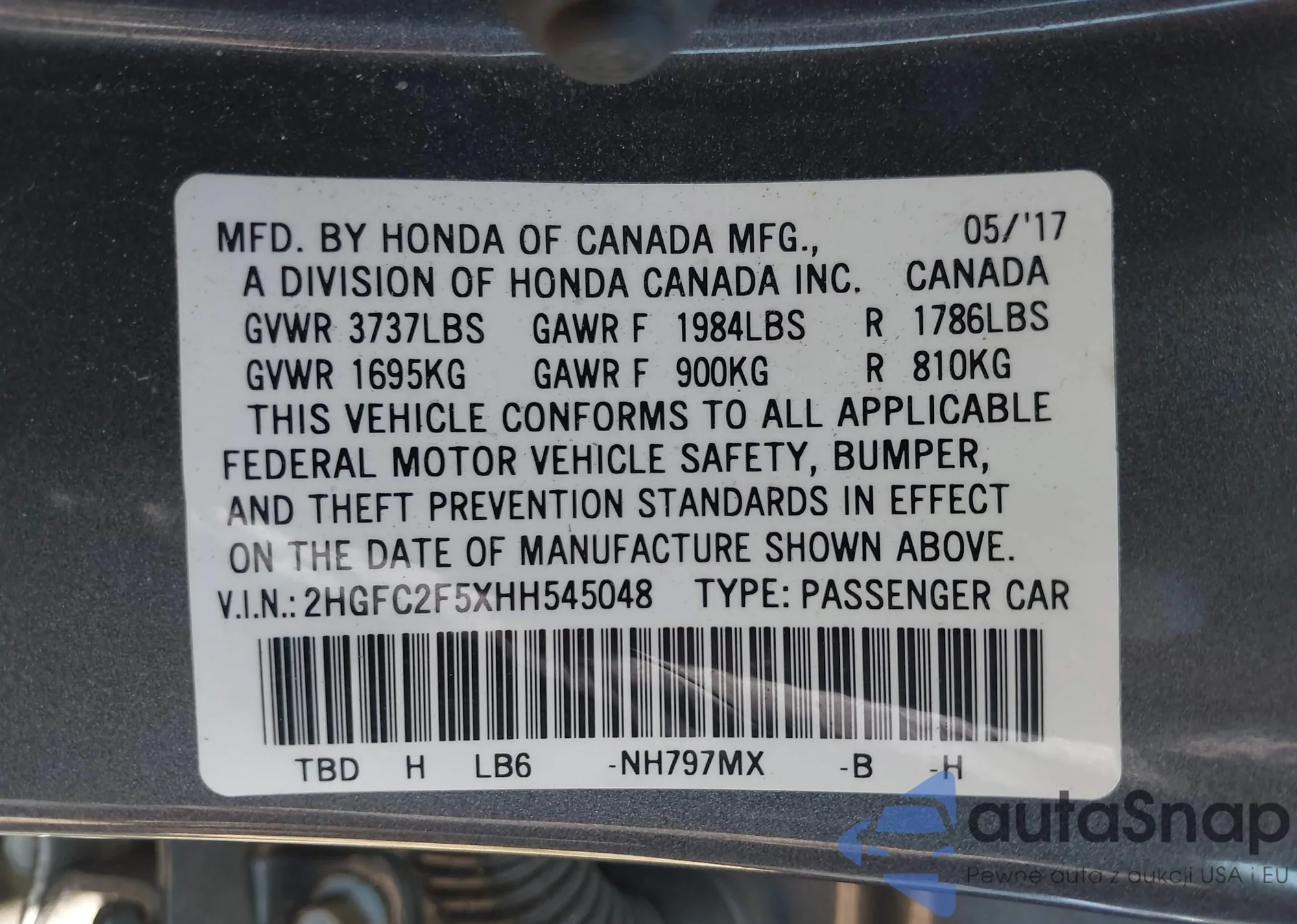 • VIN 2HGFC2F5XHH545048