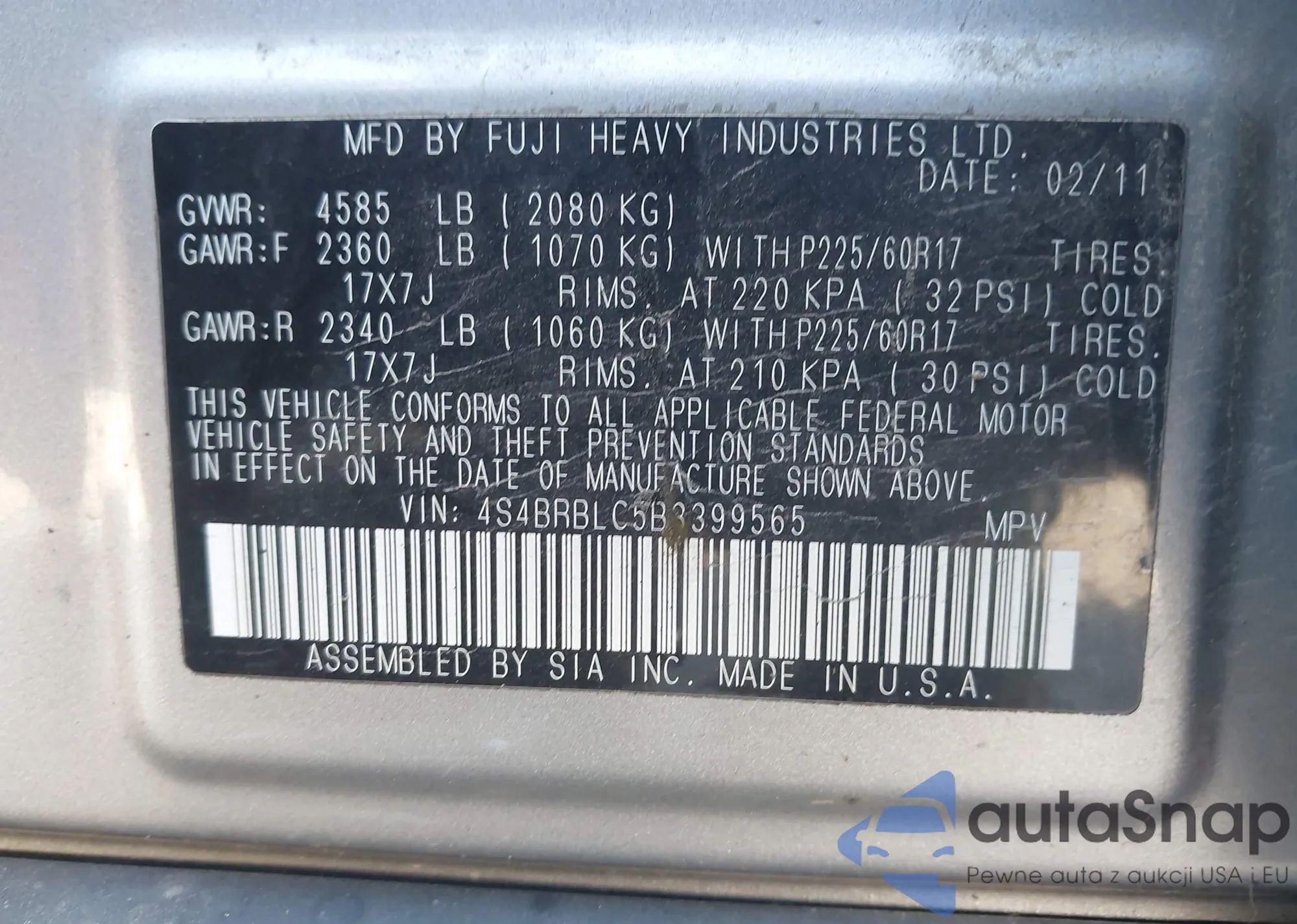 • VIN KNAGM4A79B5077958