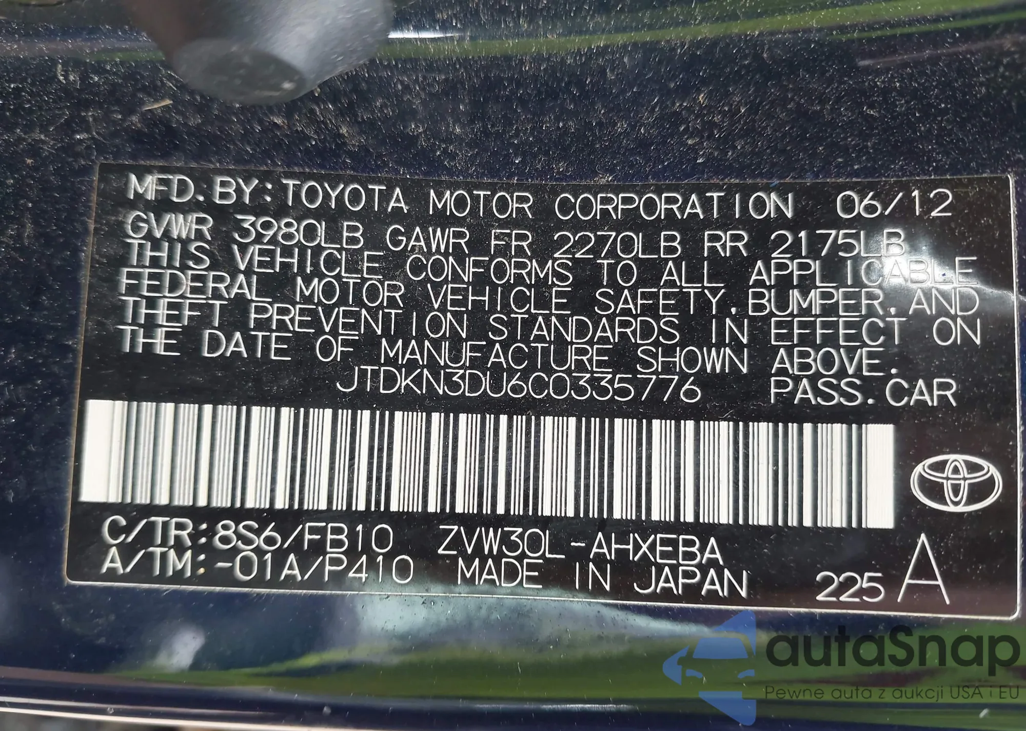 • VIN 1HGCP2F88CA168857