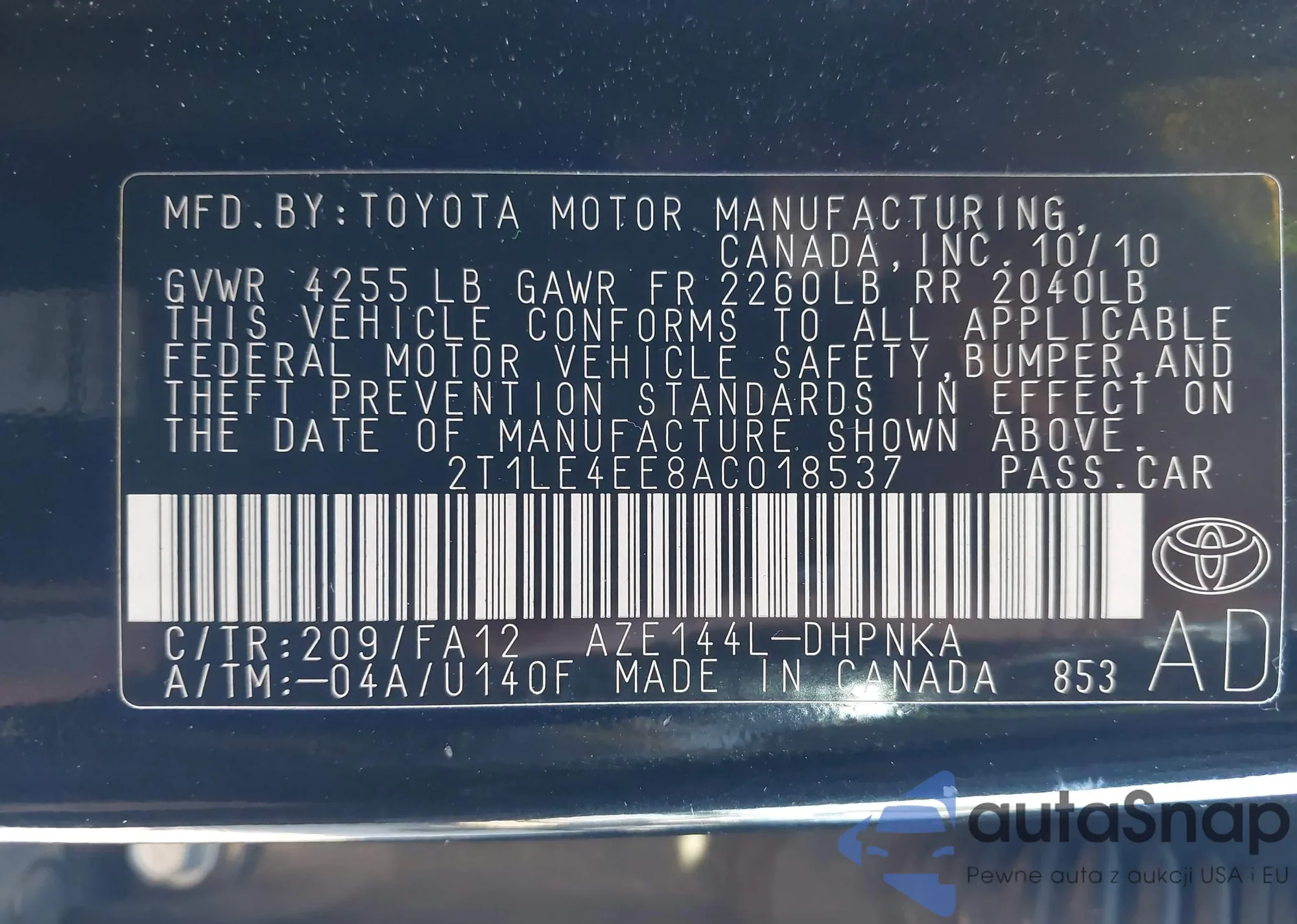 • VIN 2T1LE4EE8AC018537