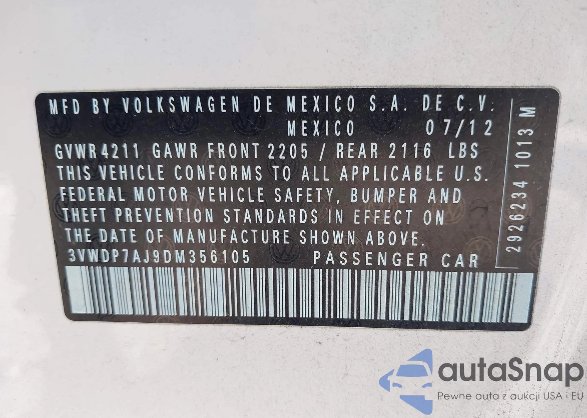 • VIN 1C4RDHAG8DC682944