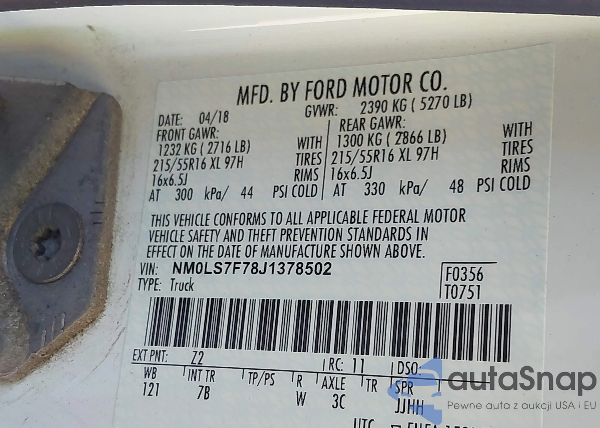 • VIN NM0LS7F78J1378502