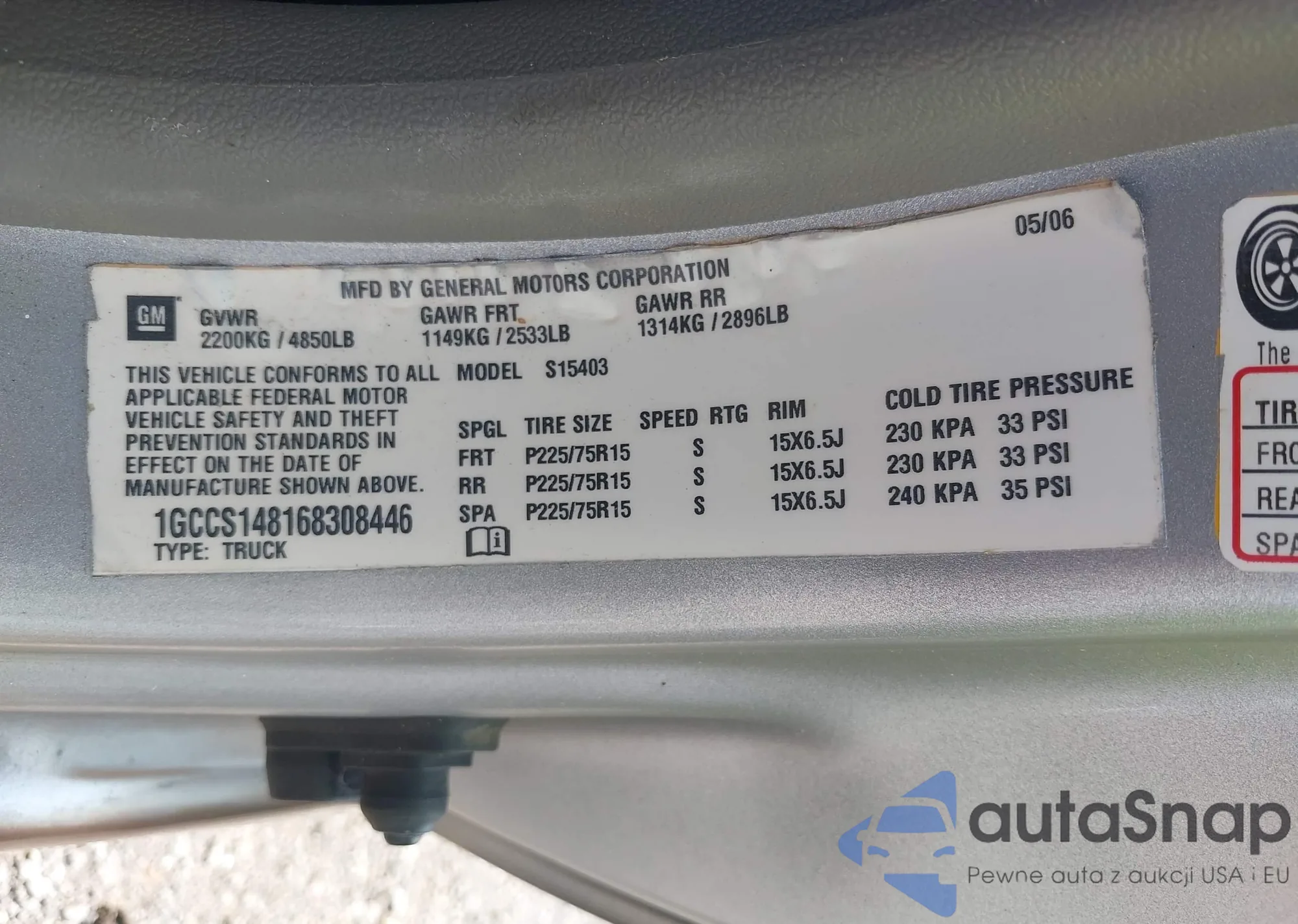LOT: 43179675 VIN: 1GCCS148168308446