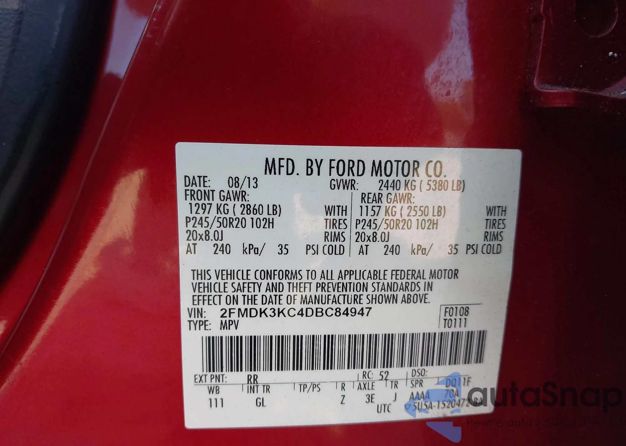 • VIN 2FMDK3KC4DBC84947