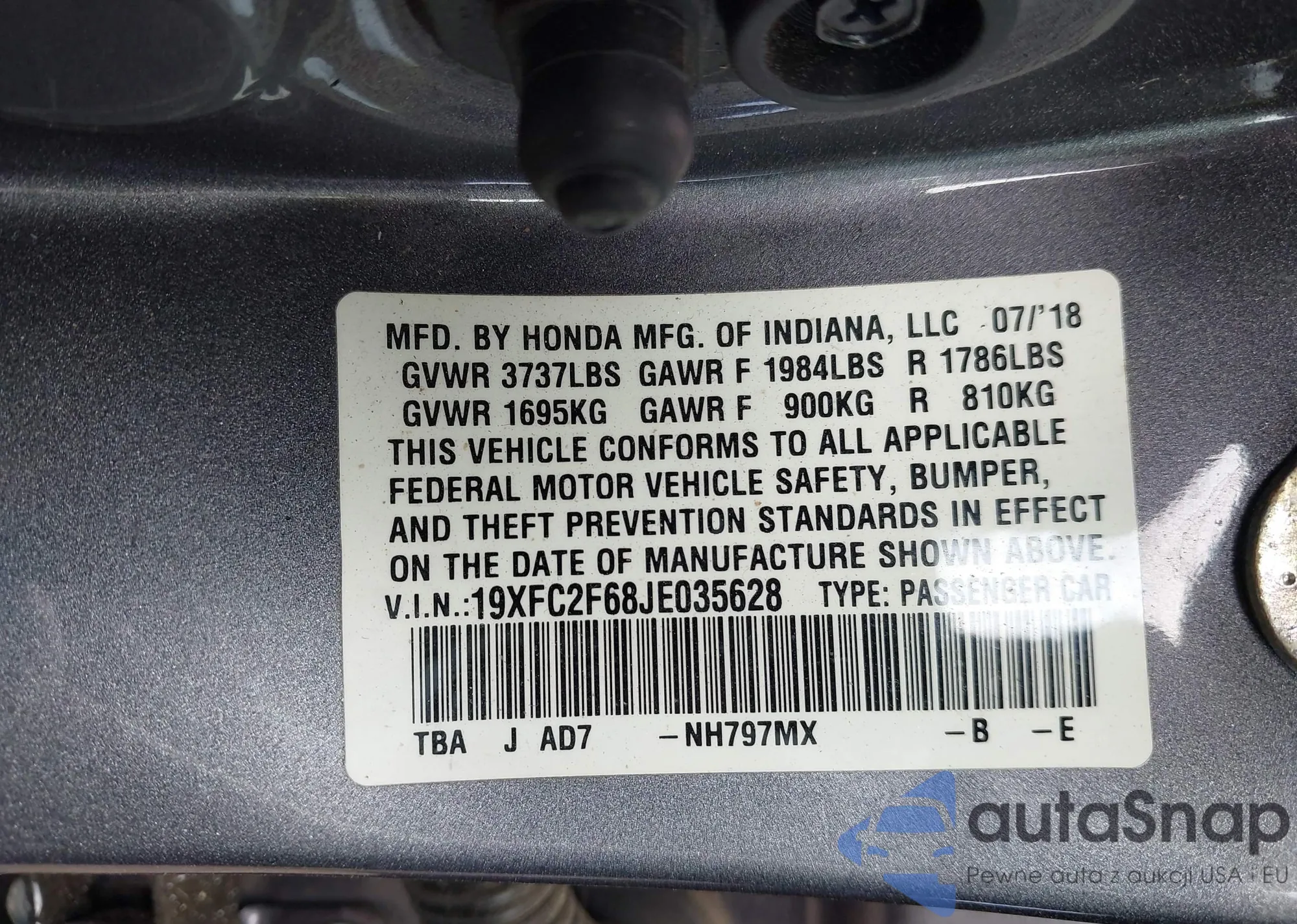 • VIN 2HKRW1H91JH520999
