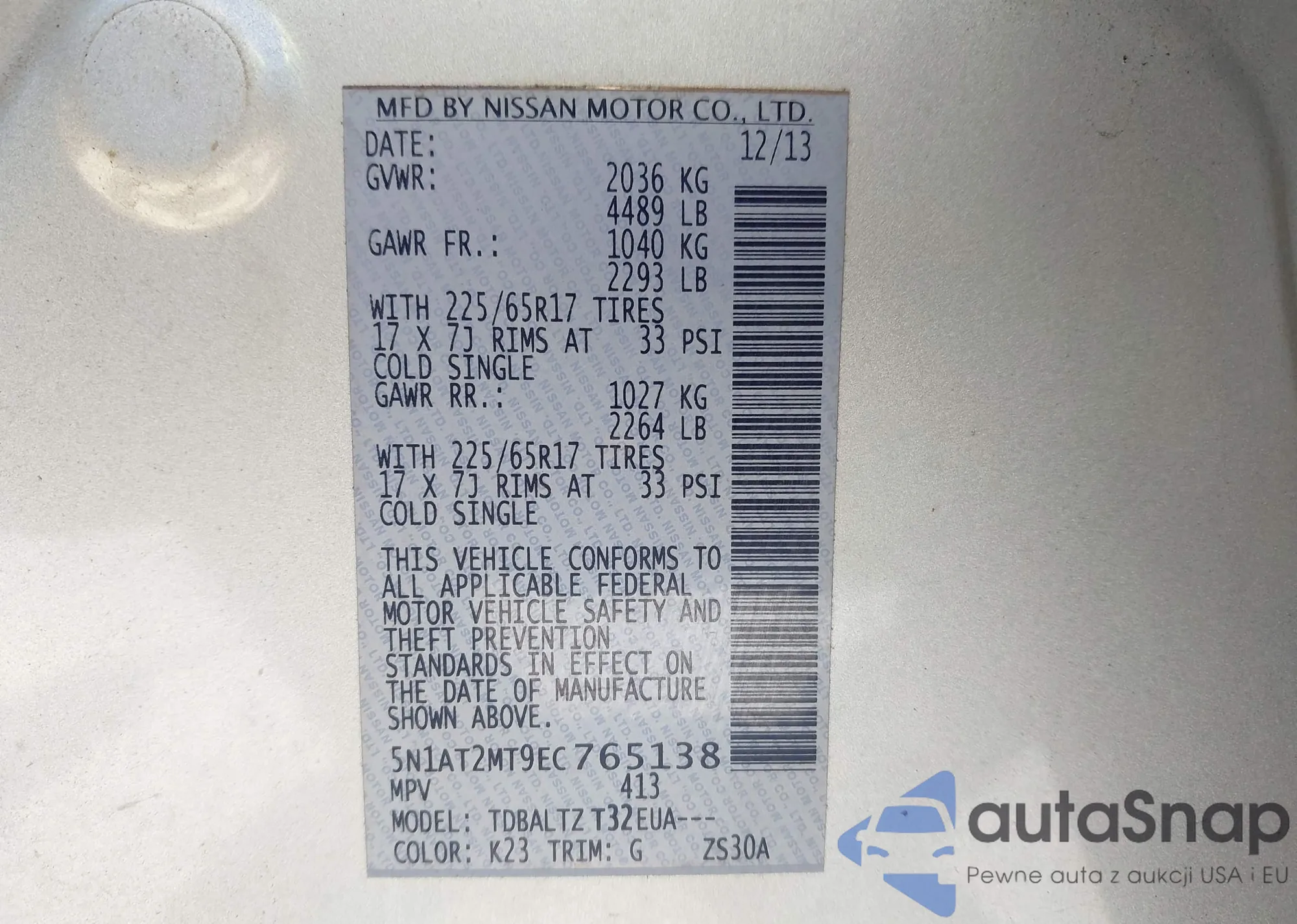 • VIN 5N1AT2MT9EC765138