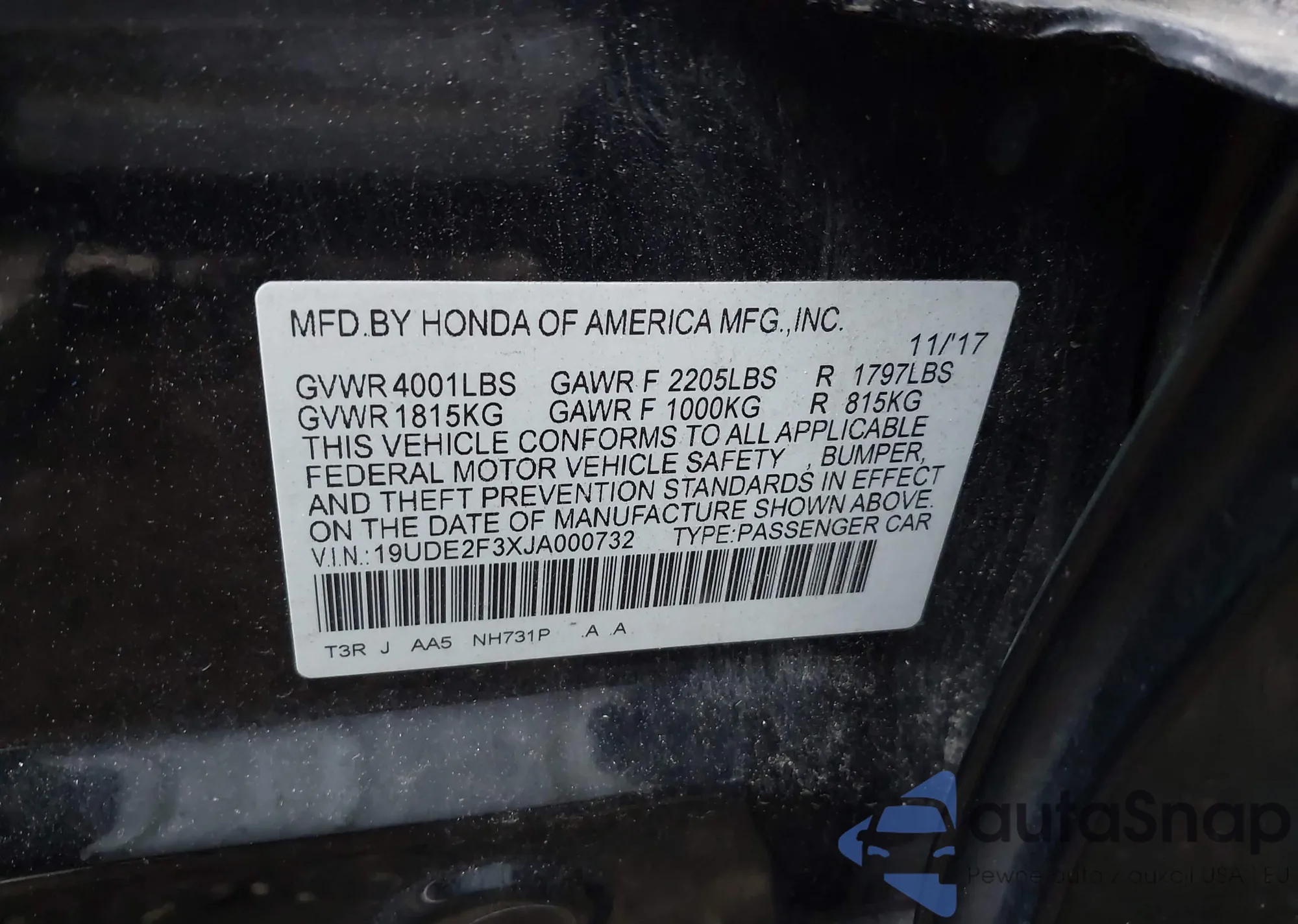 • VIN 19UDE2F3XJA000732