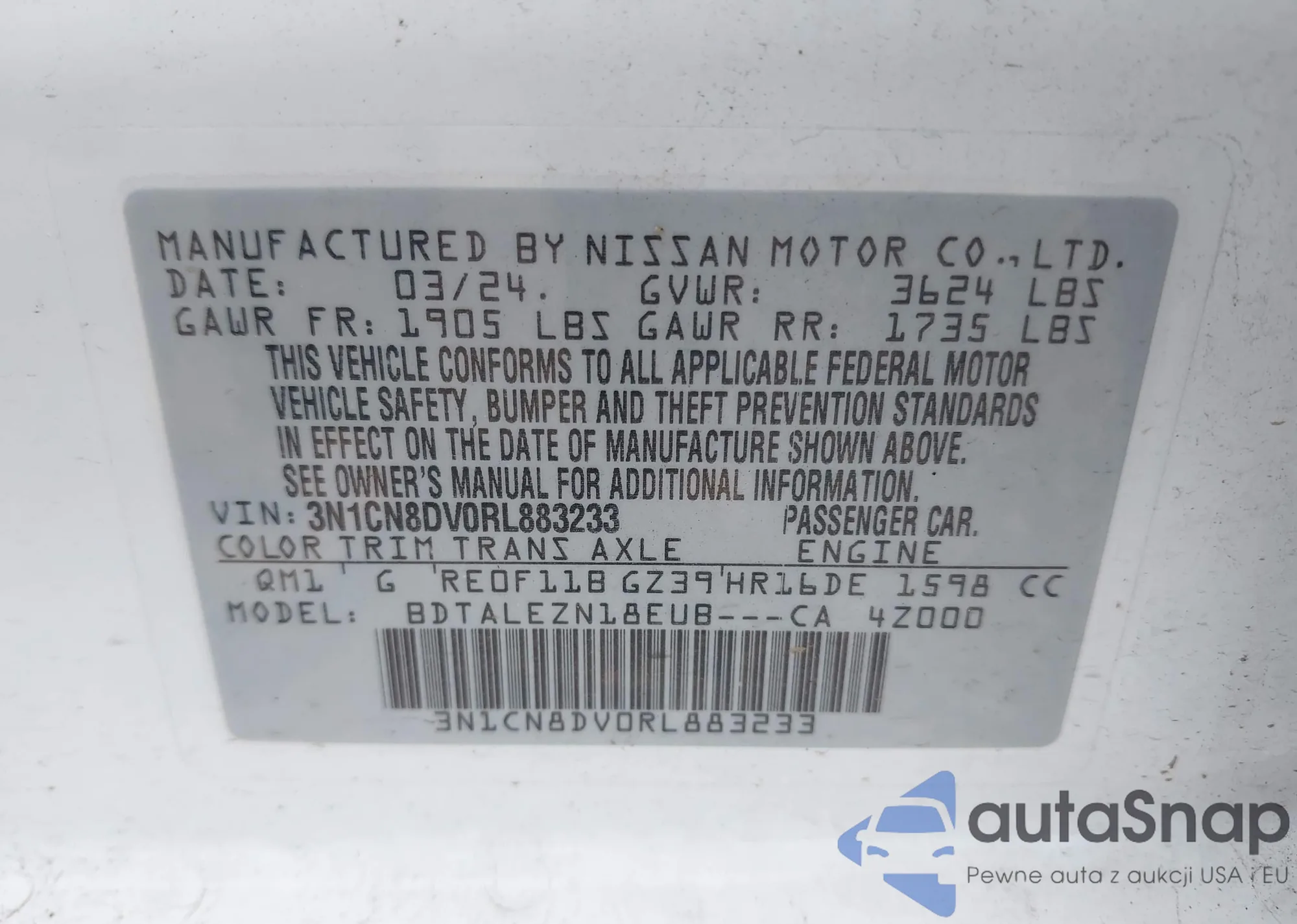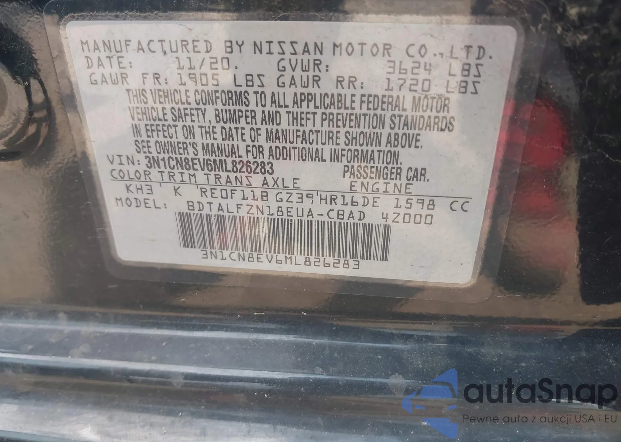 • VIN 3N1CN8EV6ML826283