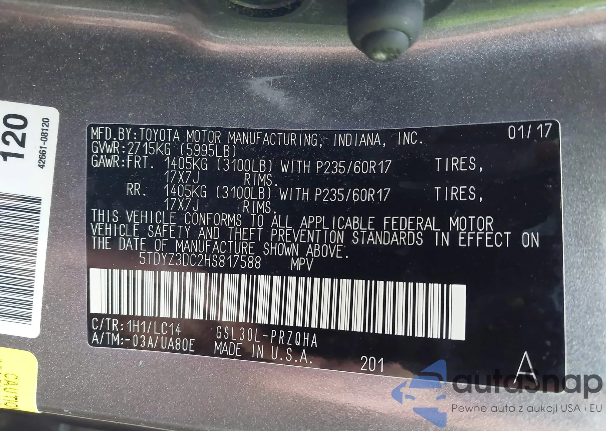 • VIN 5TDYZ3DC2HS817588