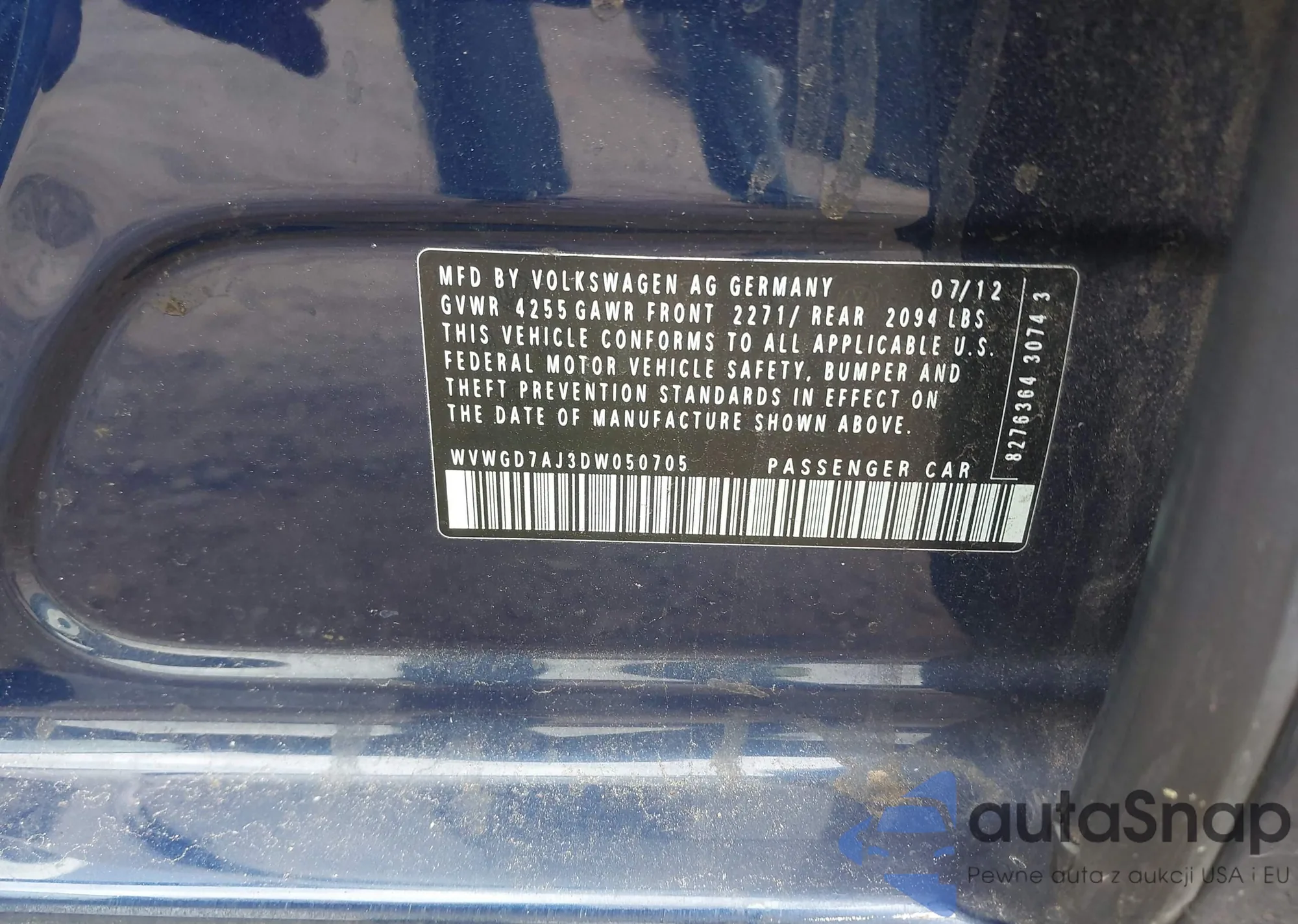 • VIN WVWGD7AJ3DW050705