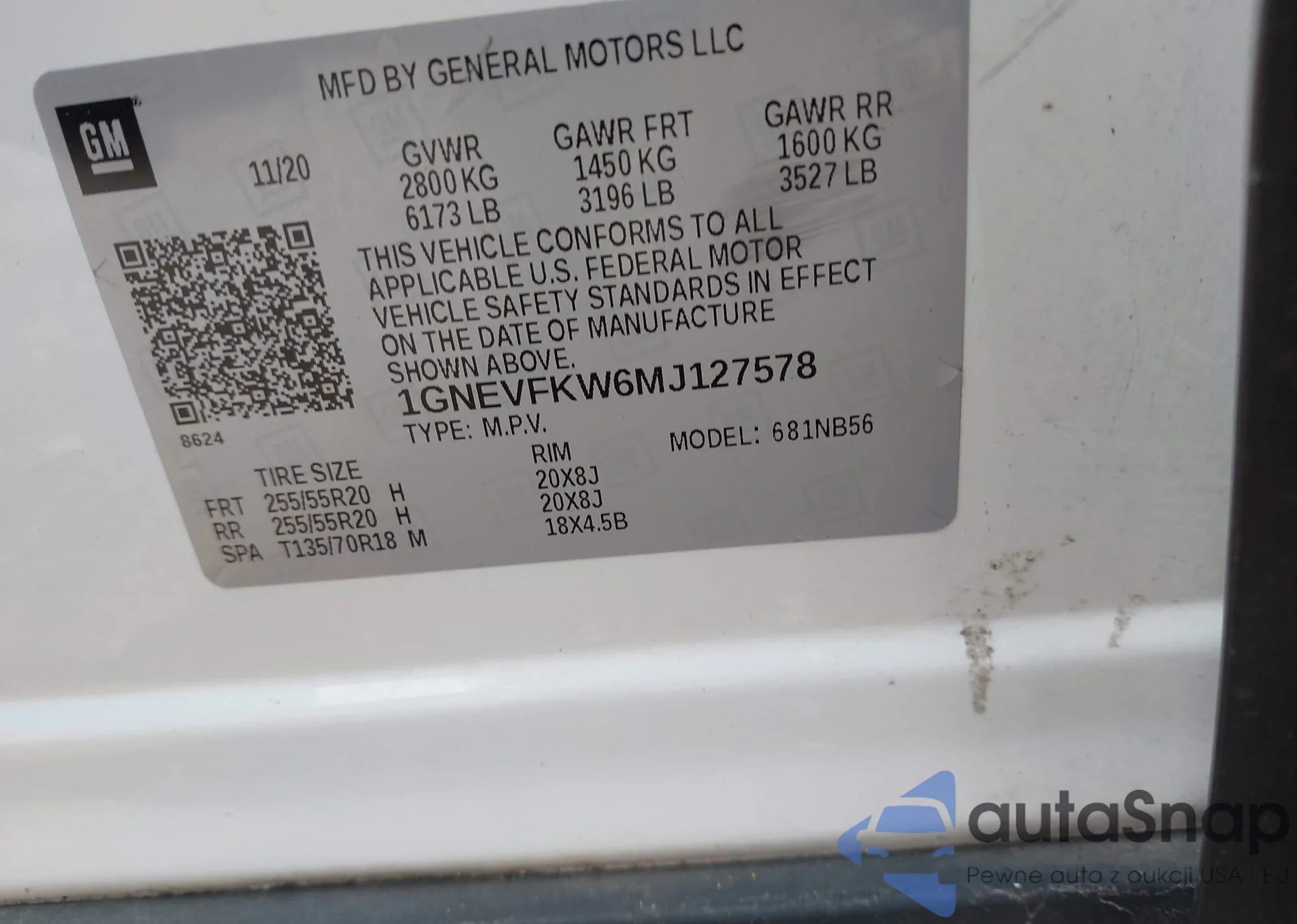 LOT: 42903352 VIN: 1GNEVFKW6MJ127578
