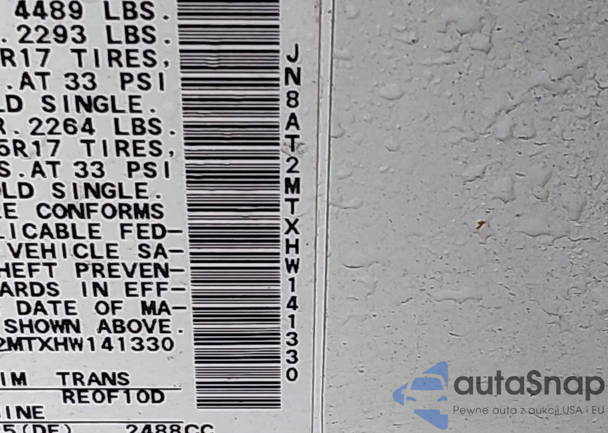 LOT: 40916162 VIN: JN8AT2MTXHW141330