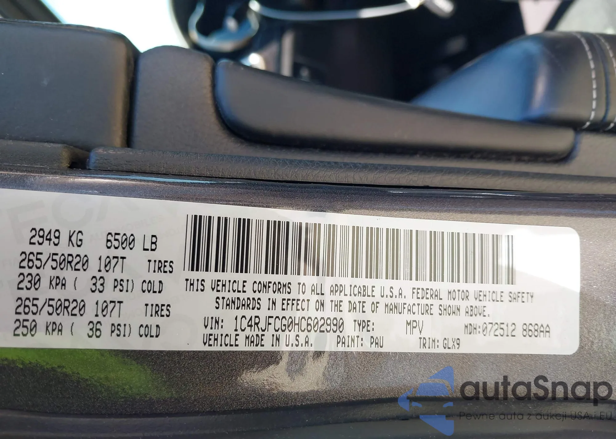 • VIN 1C4RJFCG0HC602990