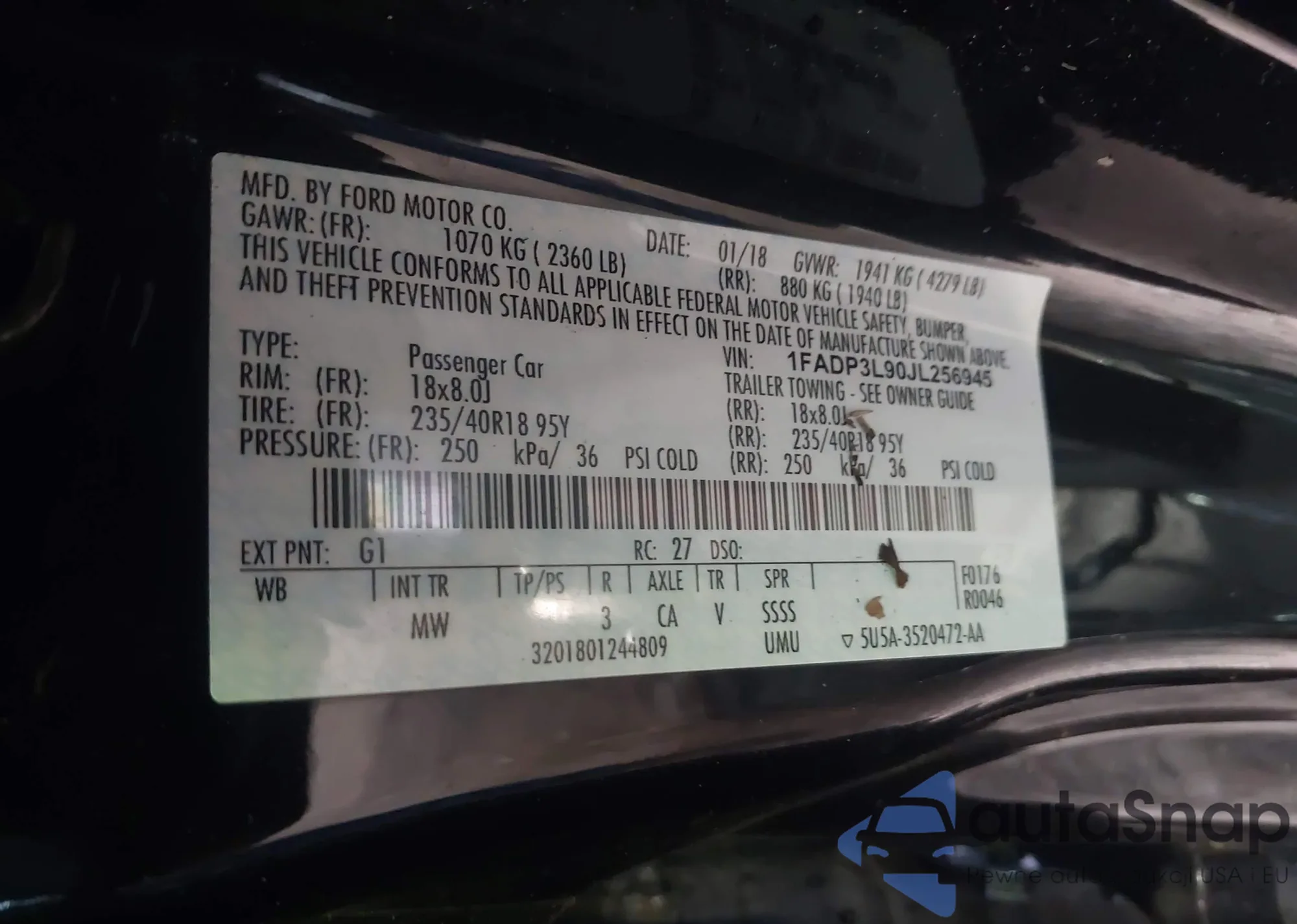• VIN 1FADP3L90JL256945