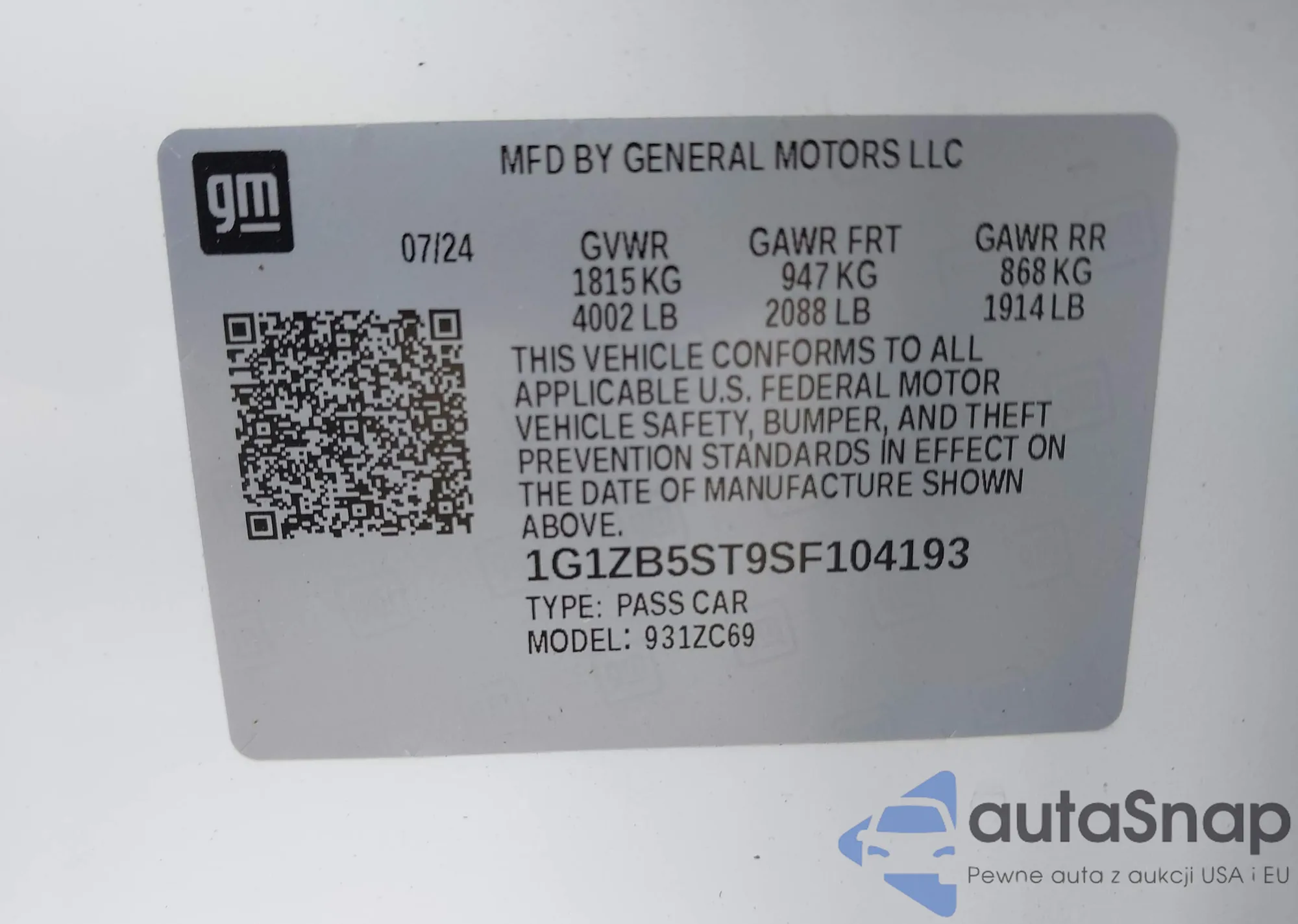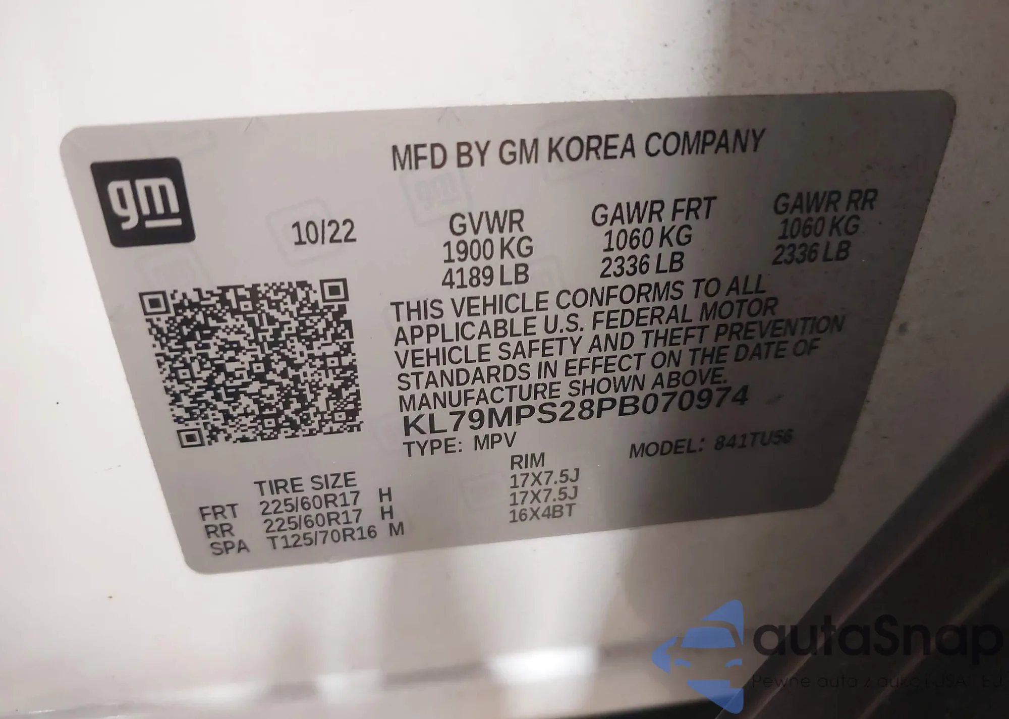 • VIN KL79MPS28PB070974
