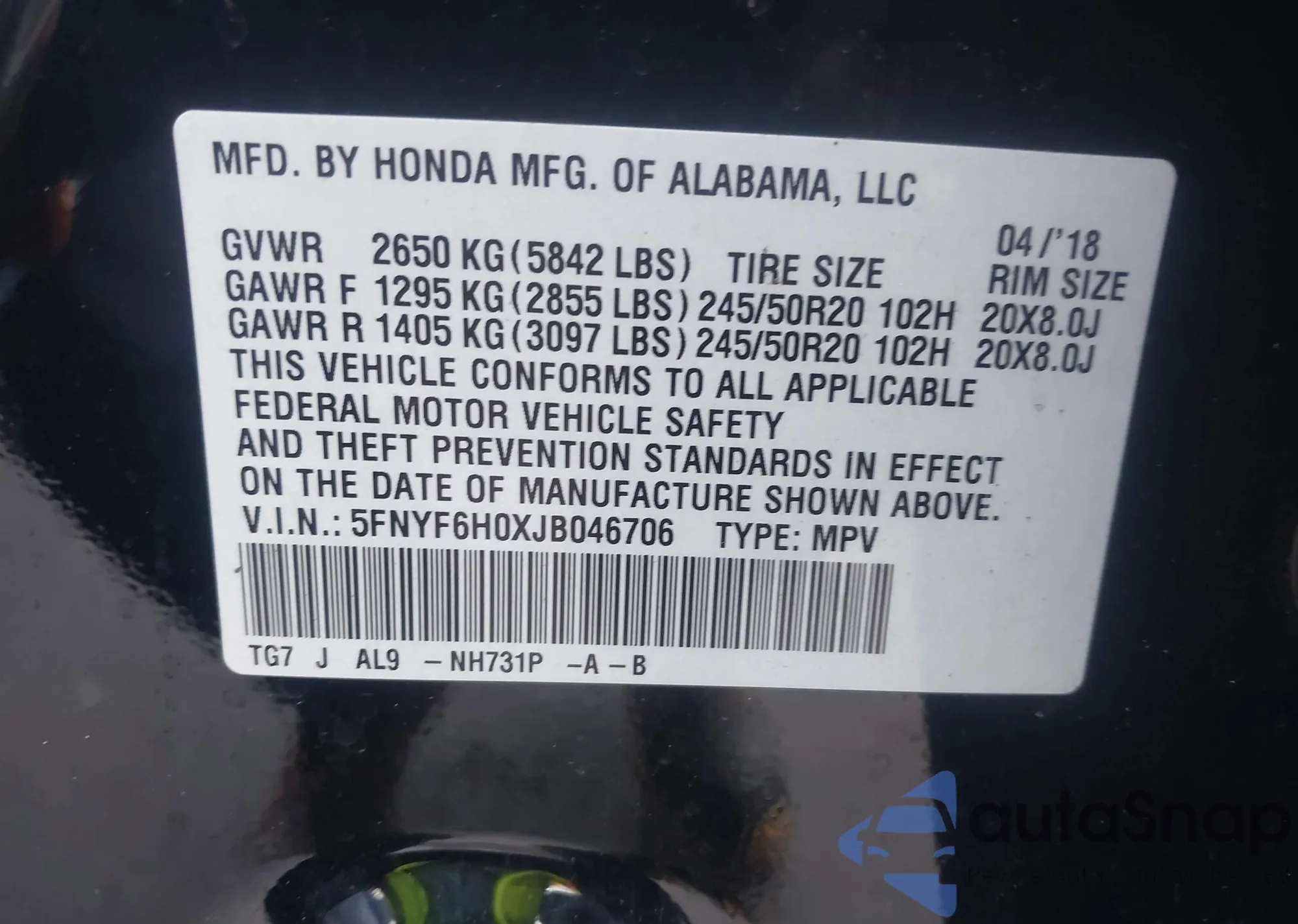 LOT: 43016310 VIN: 1FADP3L90JL256945