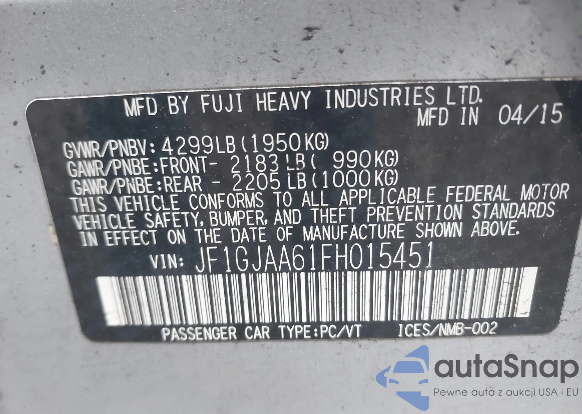 • VIN JF1GJAA61FH015451