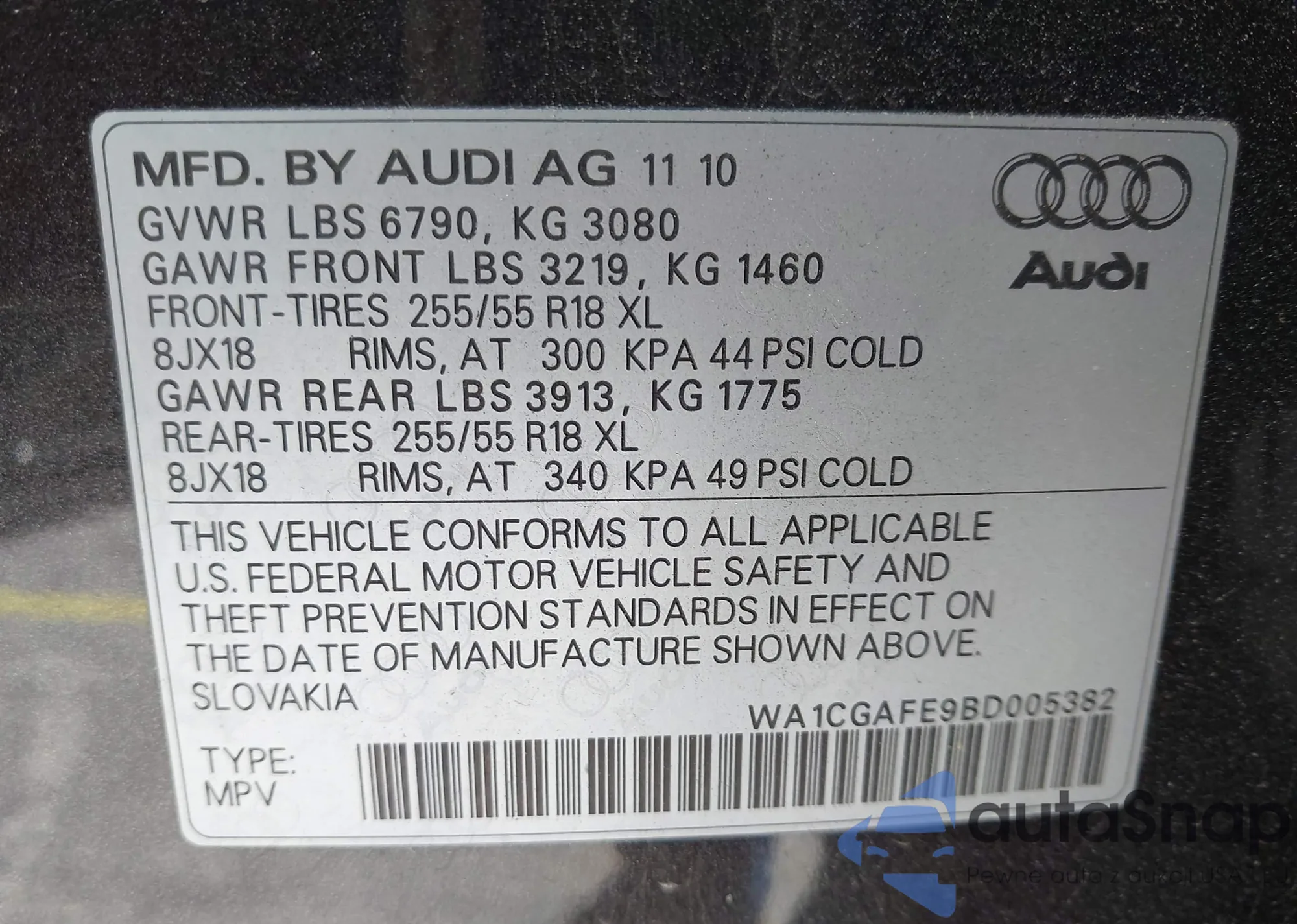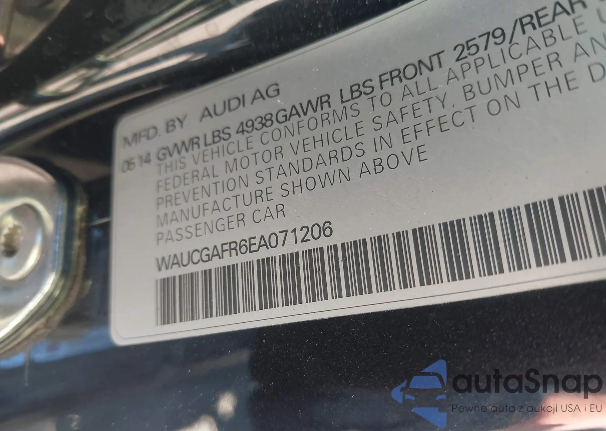 • VIN WAUCGAFR6EA071206