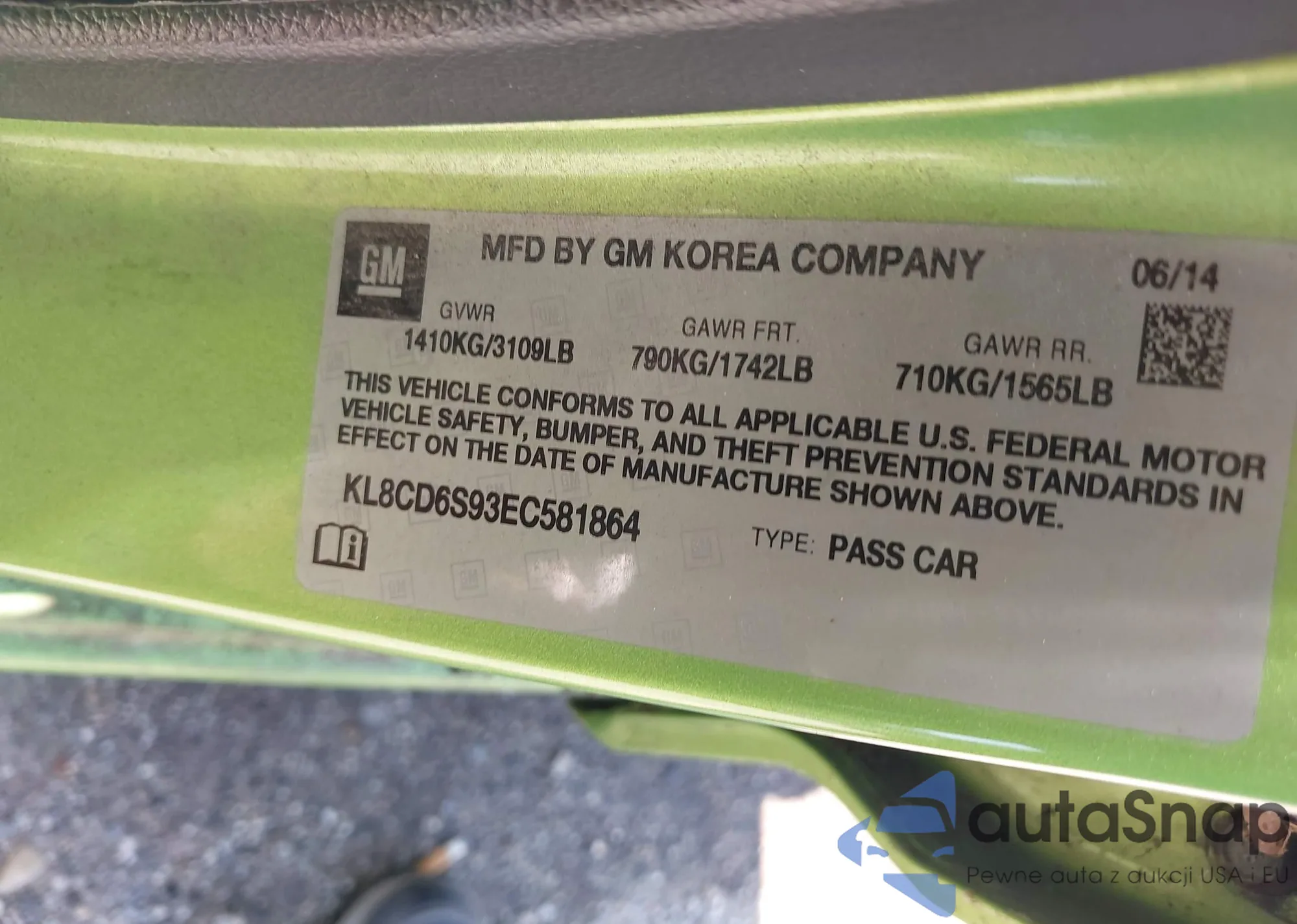 • VIN KL8CD6S93EC581864
