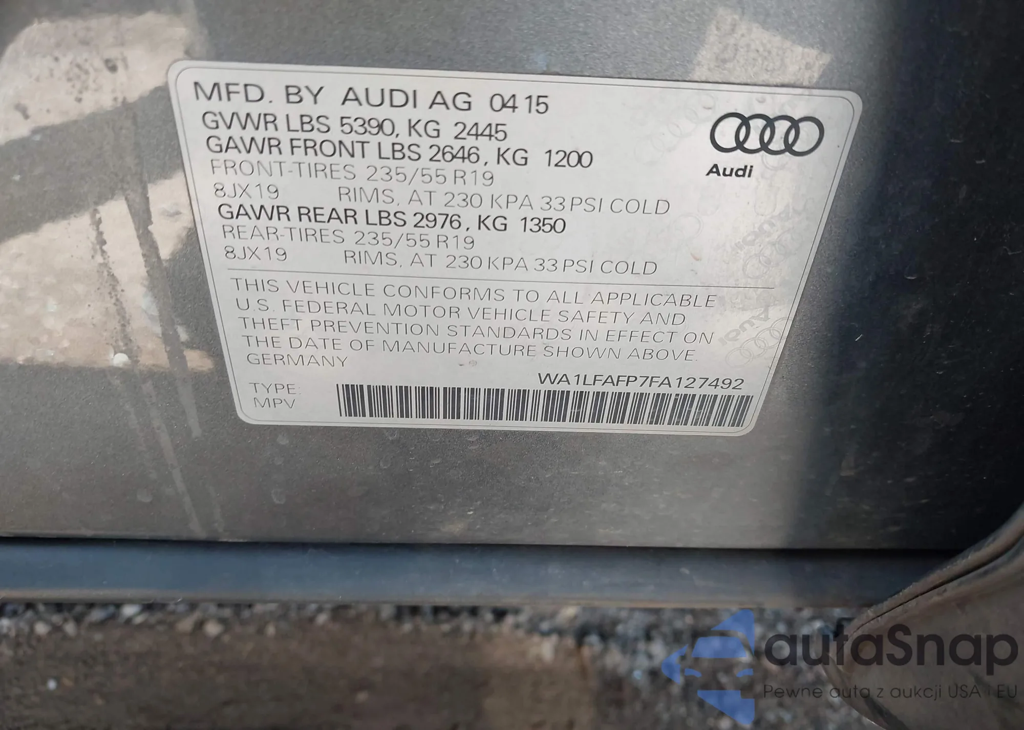 LOT: 42986200 VIN: WA1LFAFP7FA127492