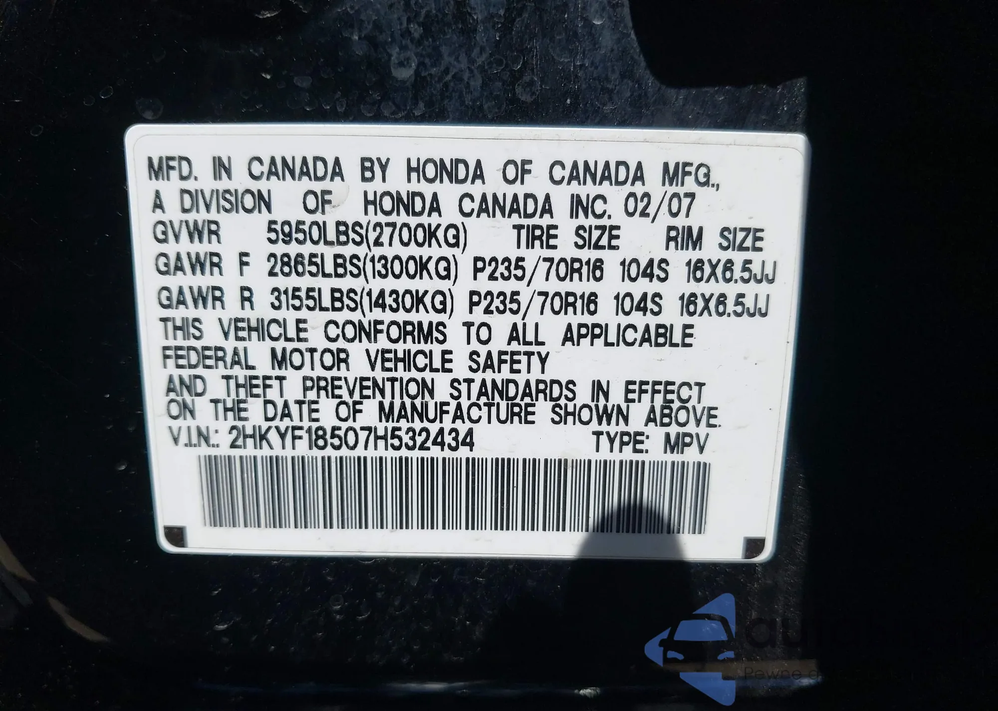 • VIN 2HNYD2H32CH538811