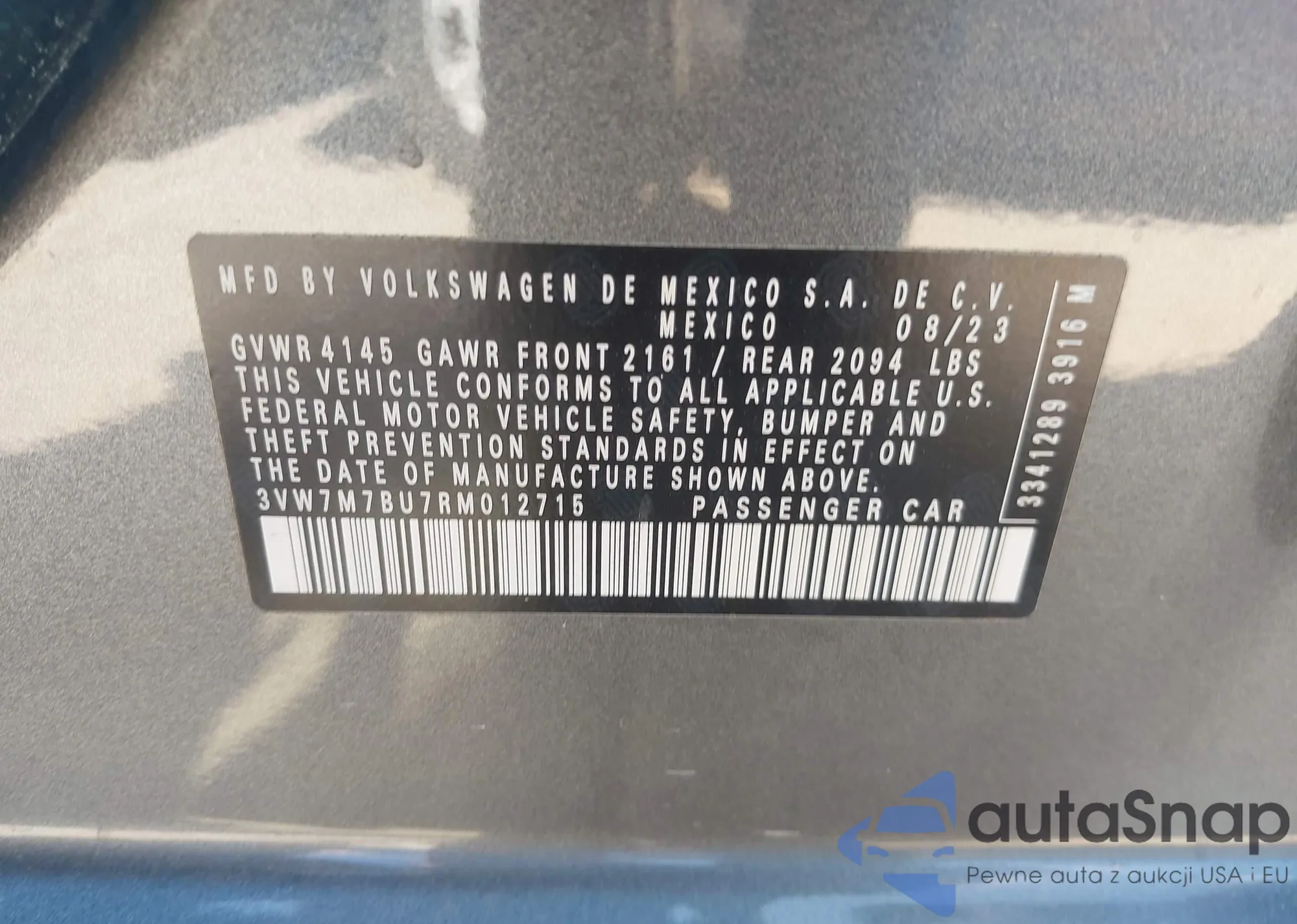 • VIN 3VW7M7BU7RM012715