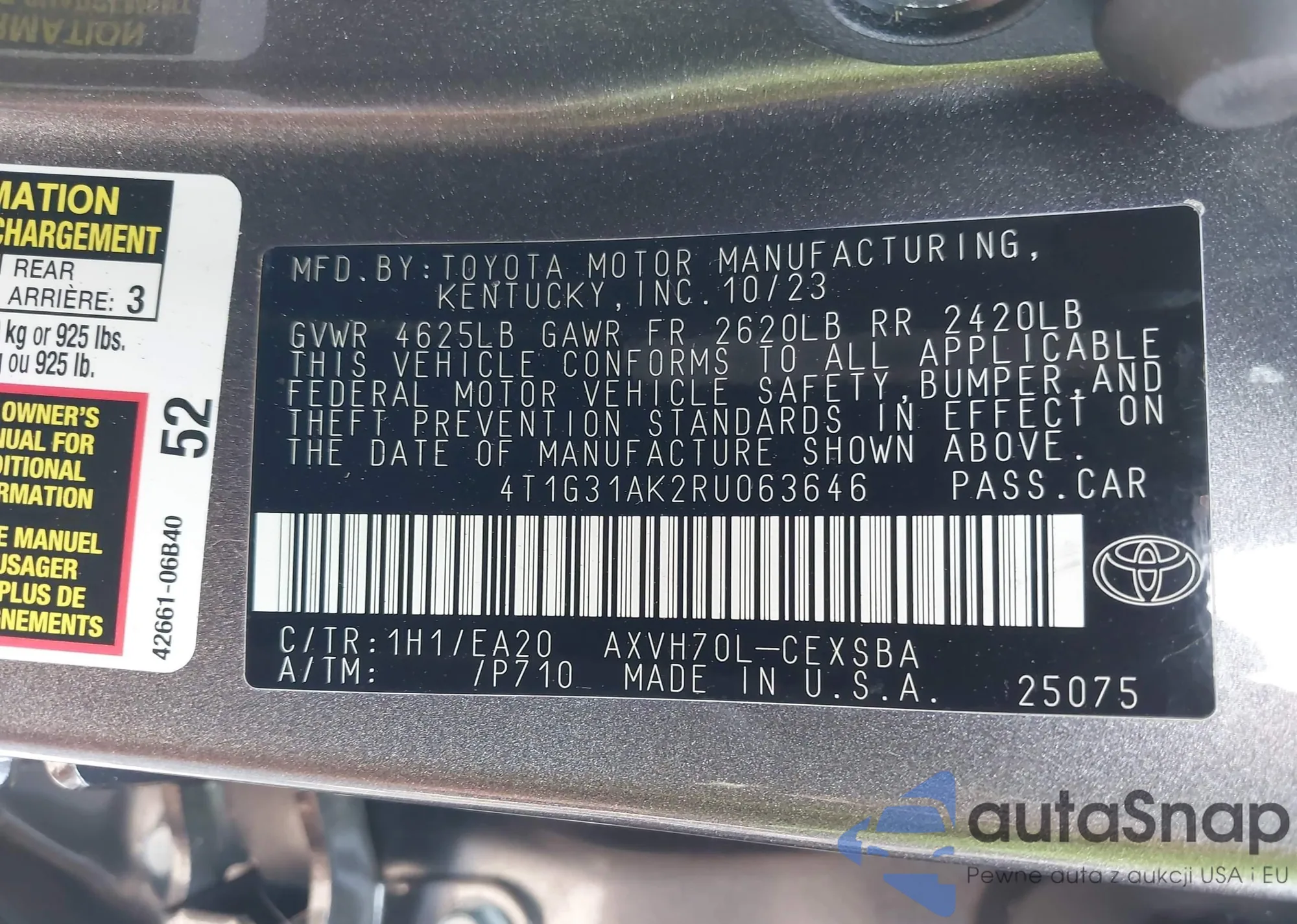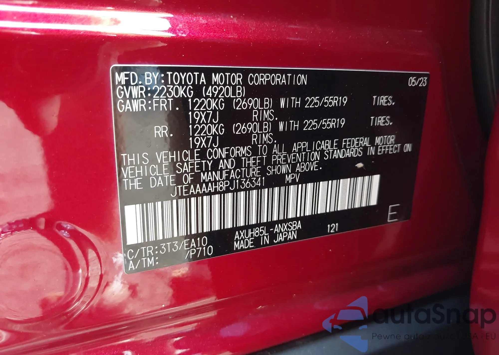 • VIN JTEAAAAH8PJ136341