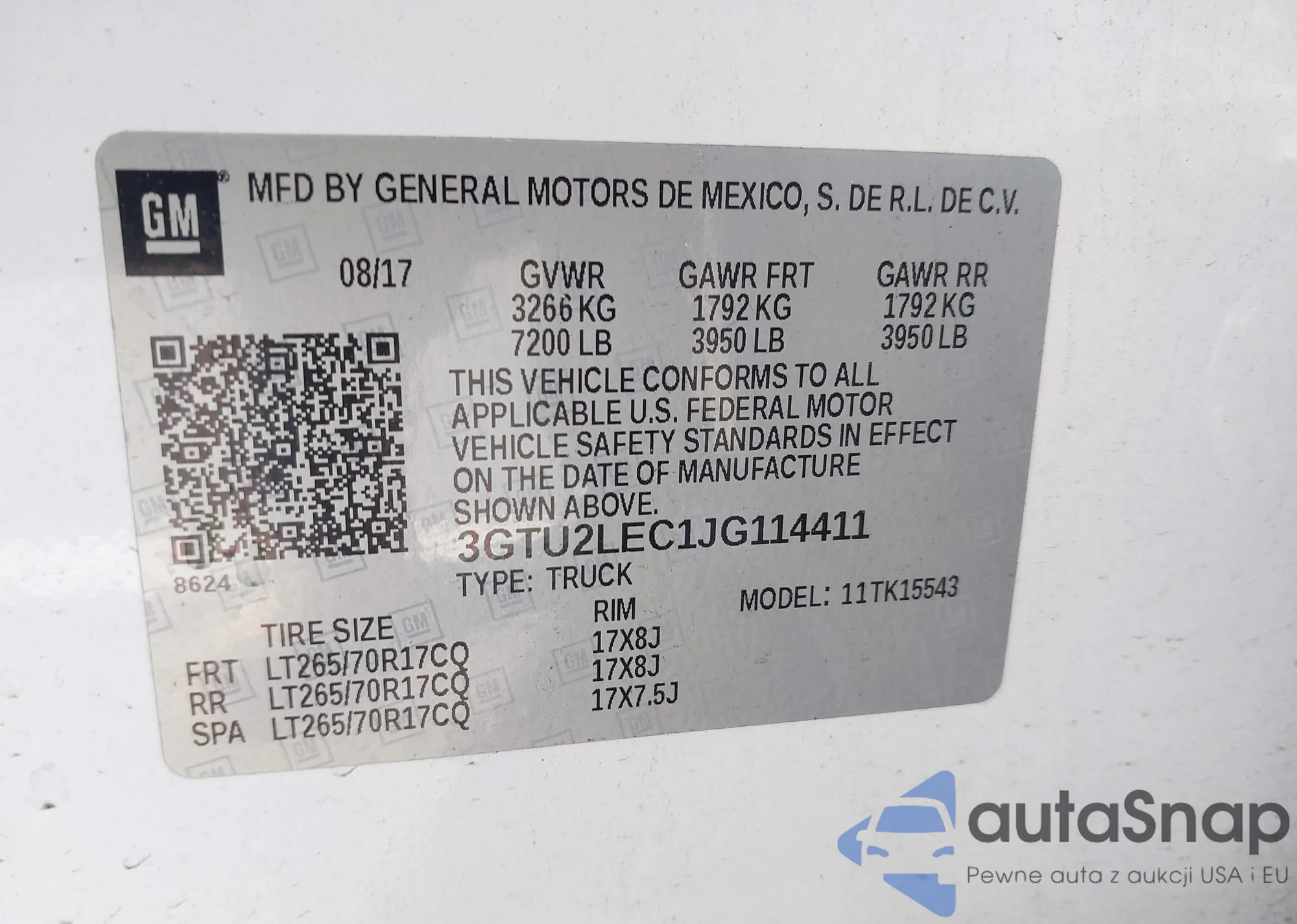 • VIN 3GTU2LEC1JG114411