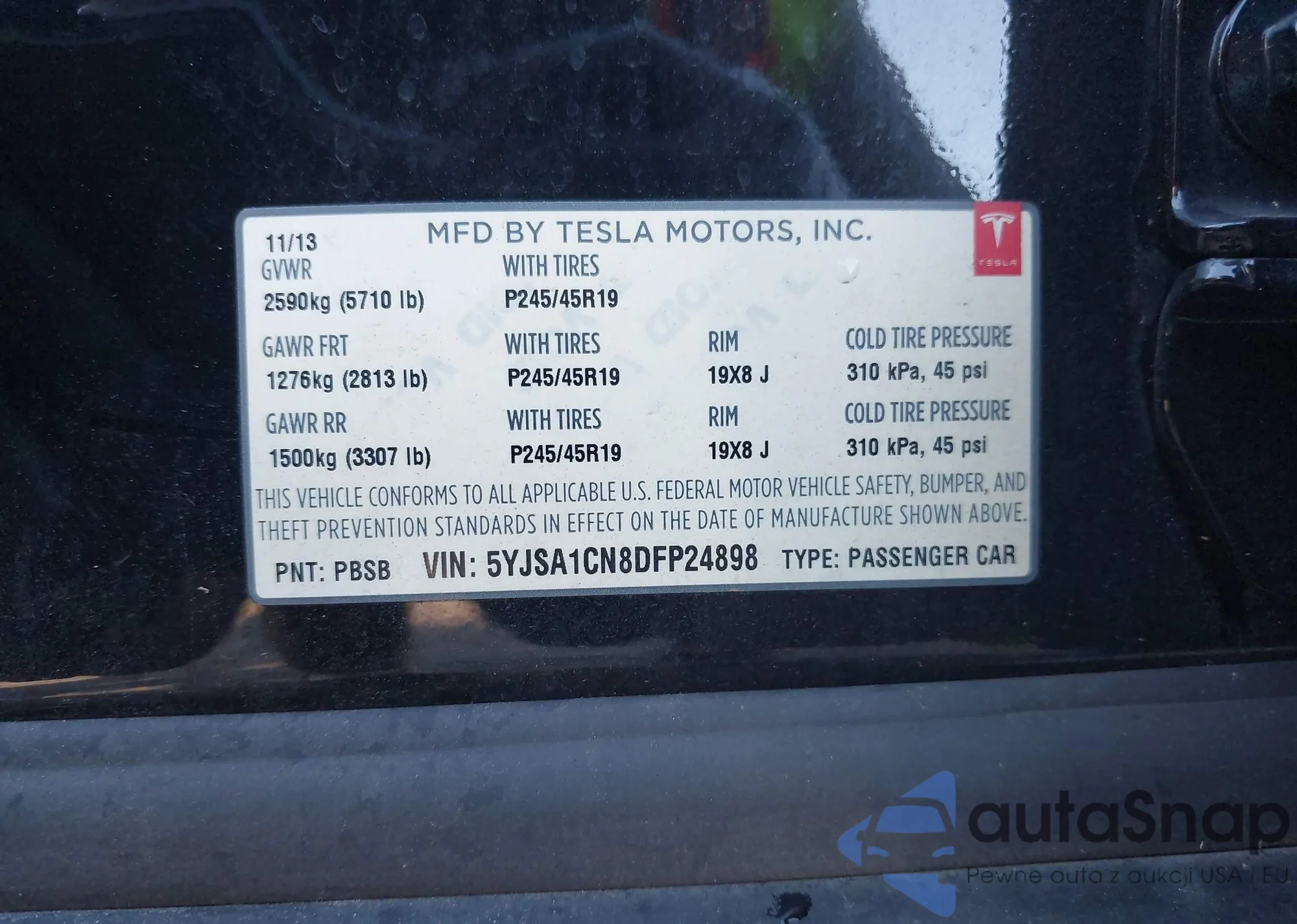 • VIN 5YJSA1CN8DFP24898