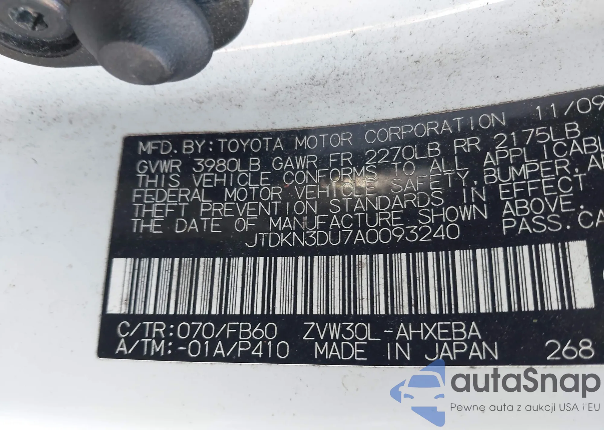 • VIN JTDKN3DU7A0093240