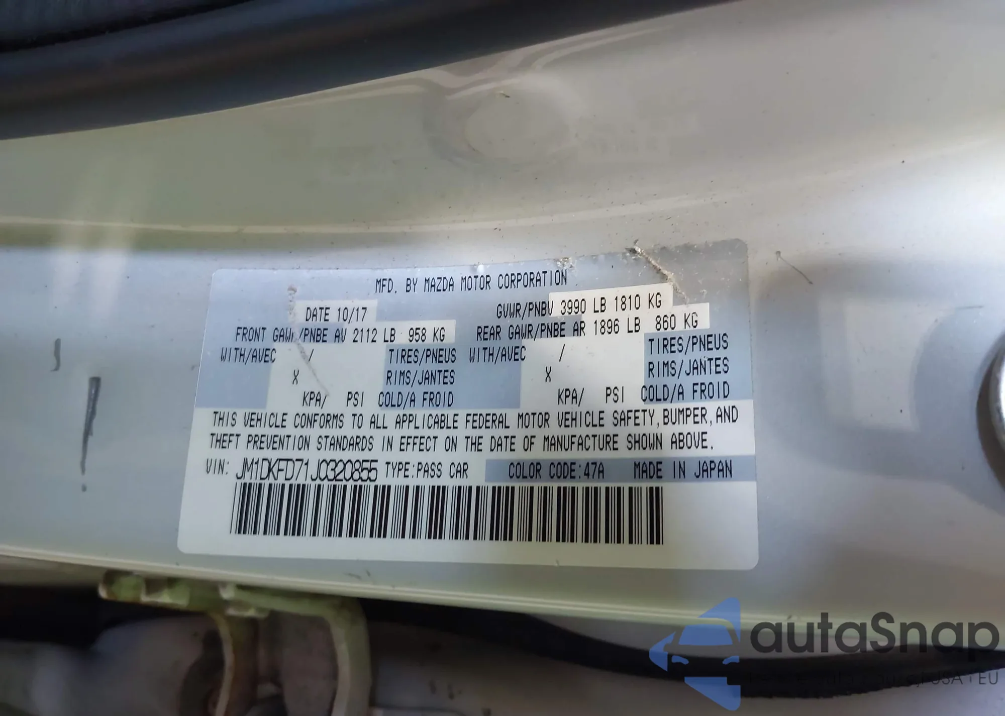 LOT: 43219545 VIN: JM1DKFD71J0320855