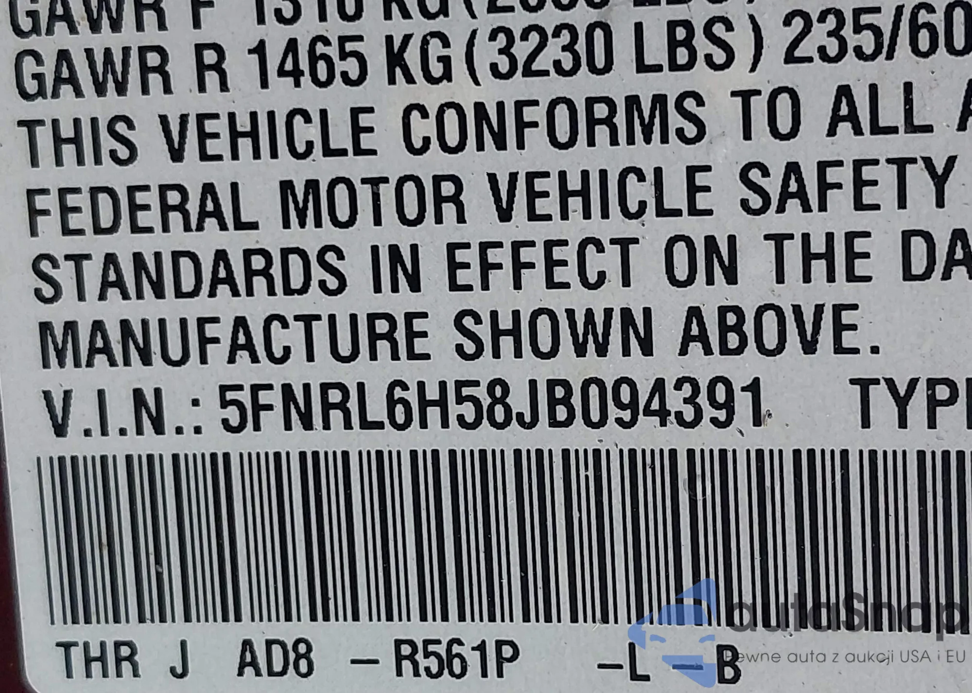• VIN 5FNRL6H58JB094391