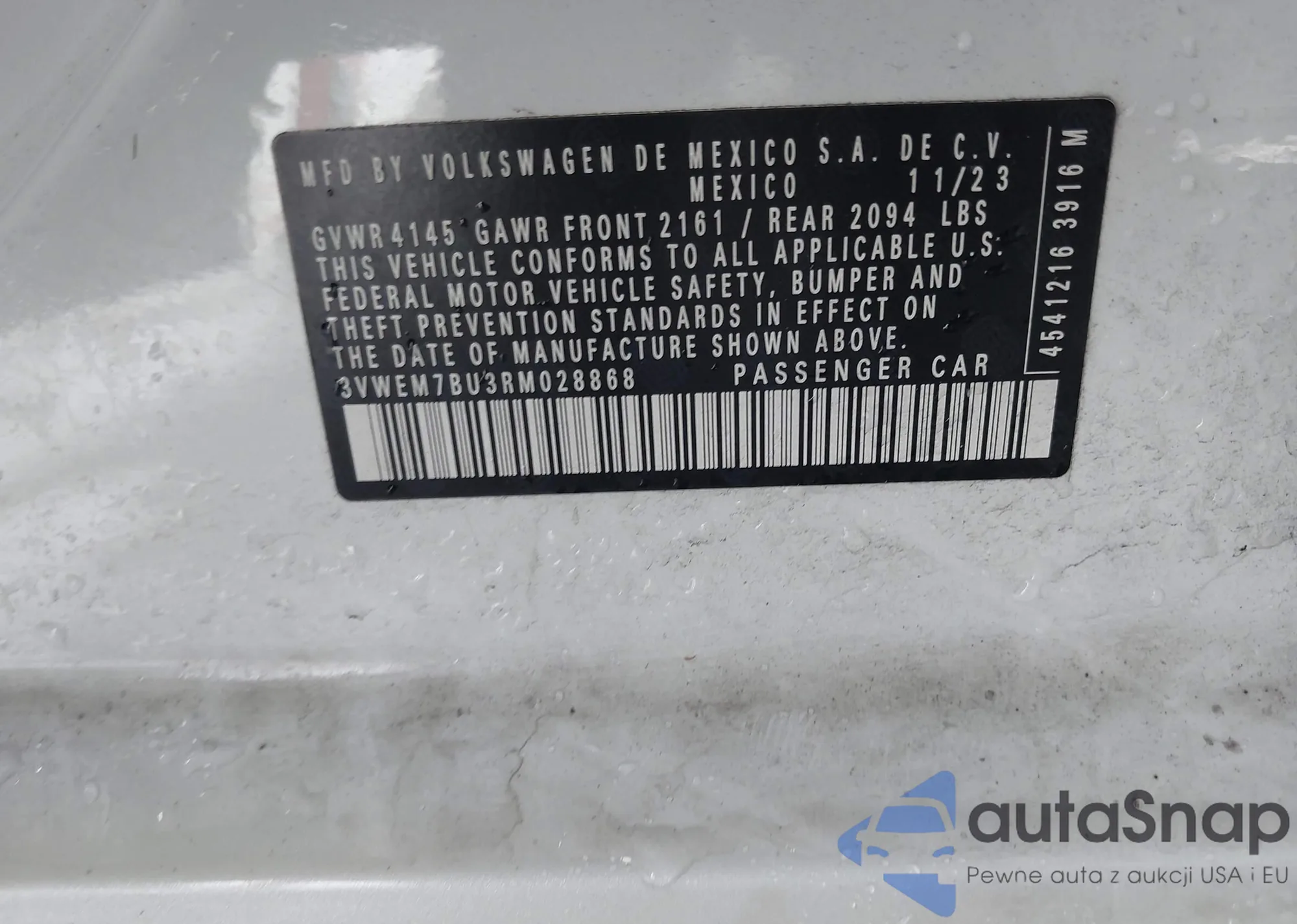 • VIN WAUGFAFC0EN101003