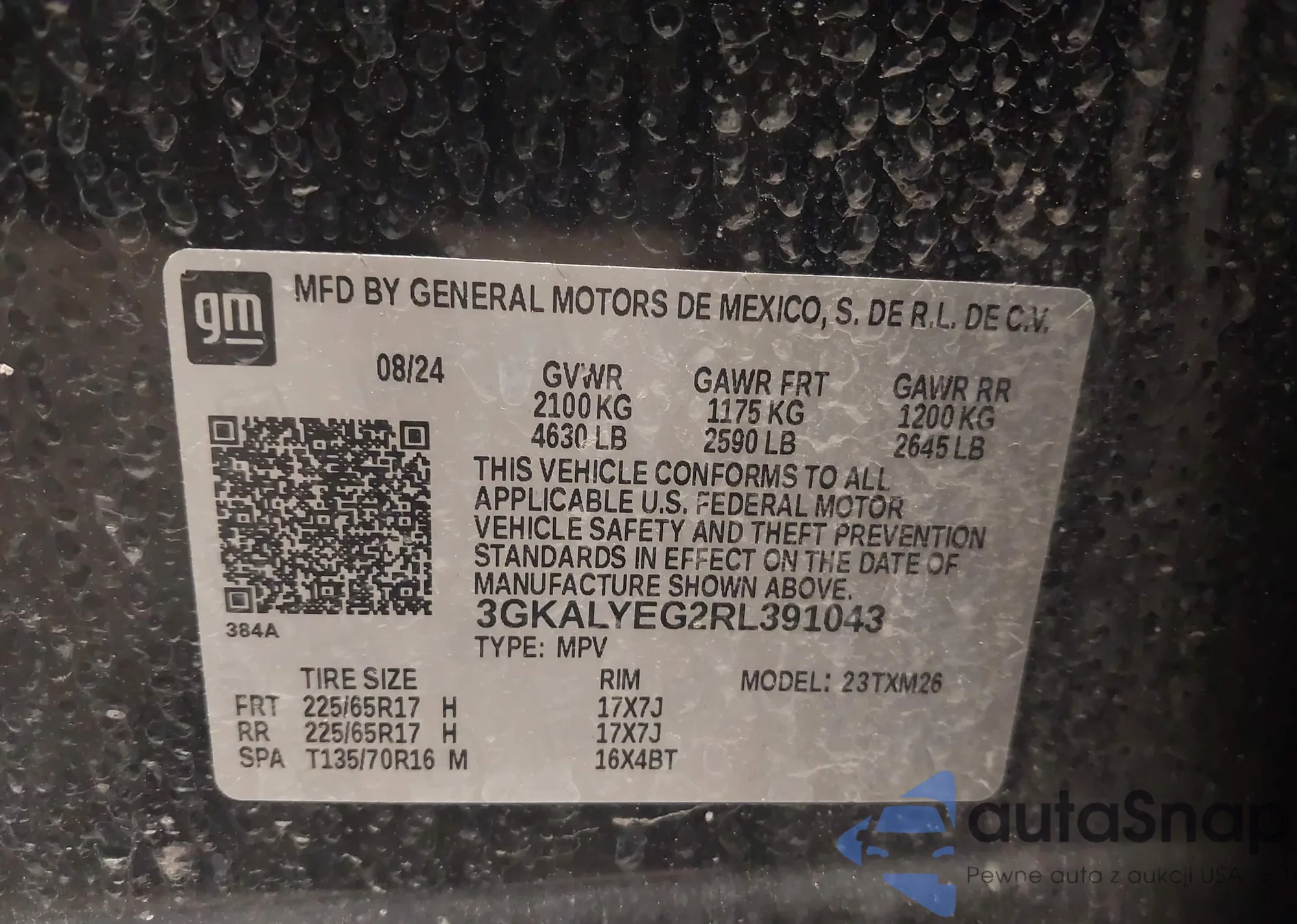 LOT: 42784316 VIN: 7MUAAAAG1PV070395