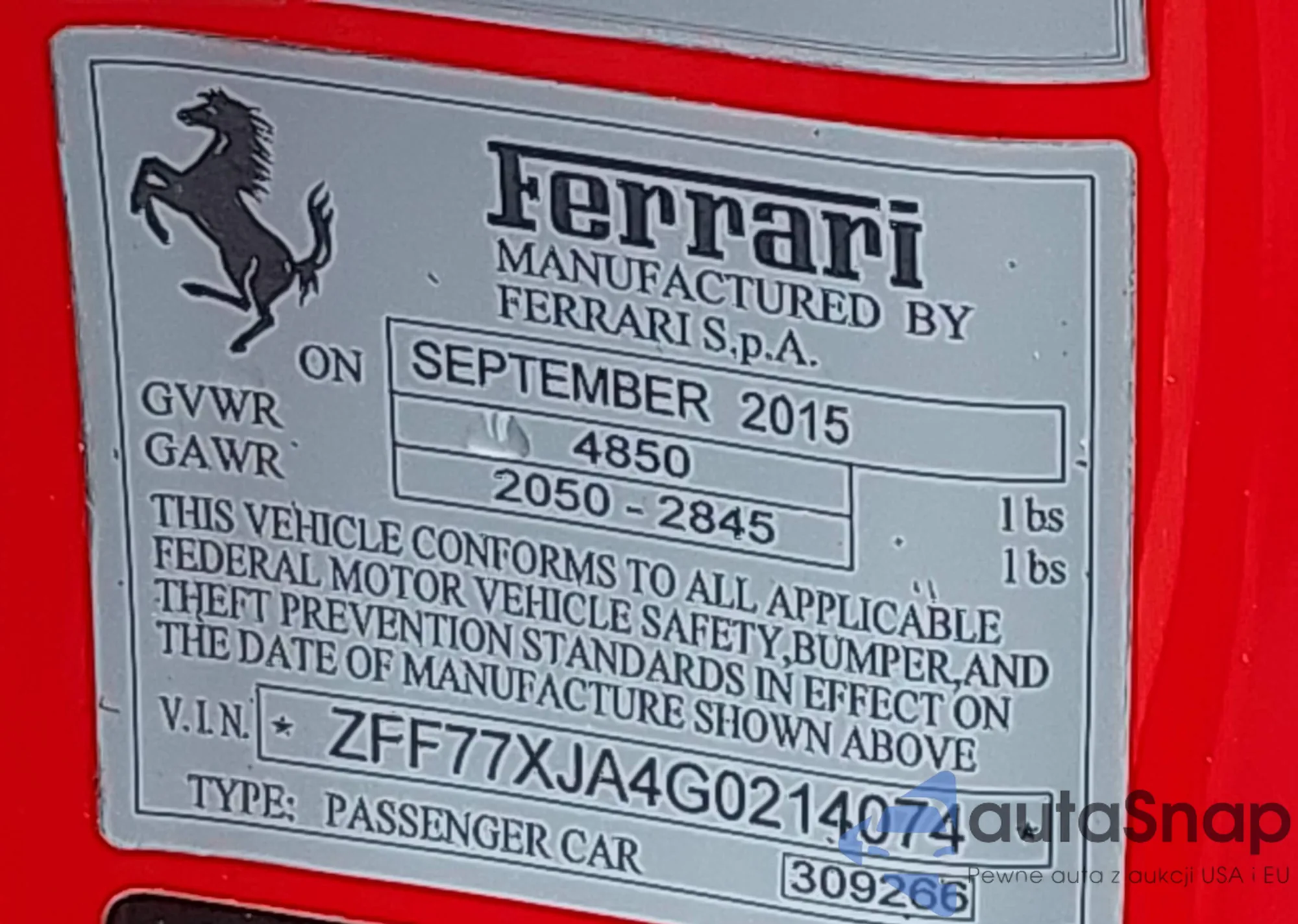 • VIN ZFF77XJA4G0214074