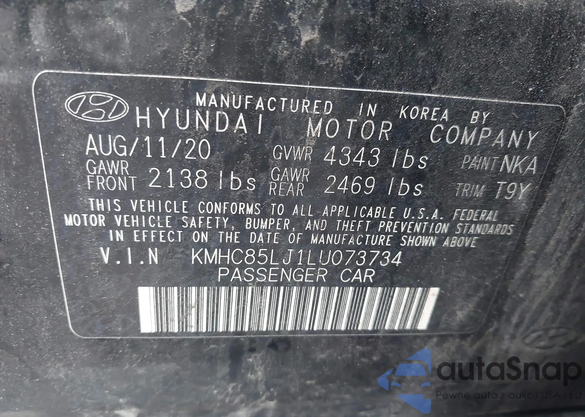 LOT: 43038539 VIN: KMHC85LJ1LU073734