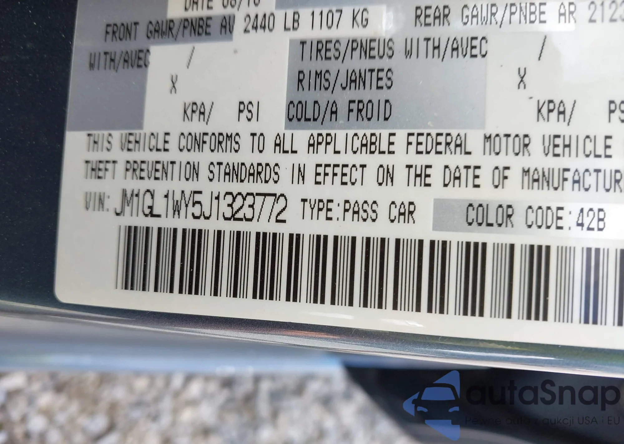 LOT: 43091644 VIN: JM1GL1WY5J1323772