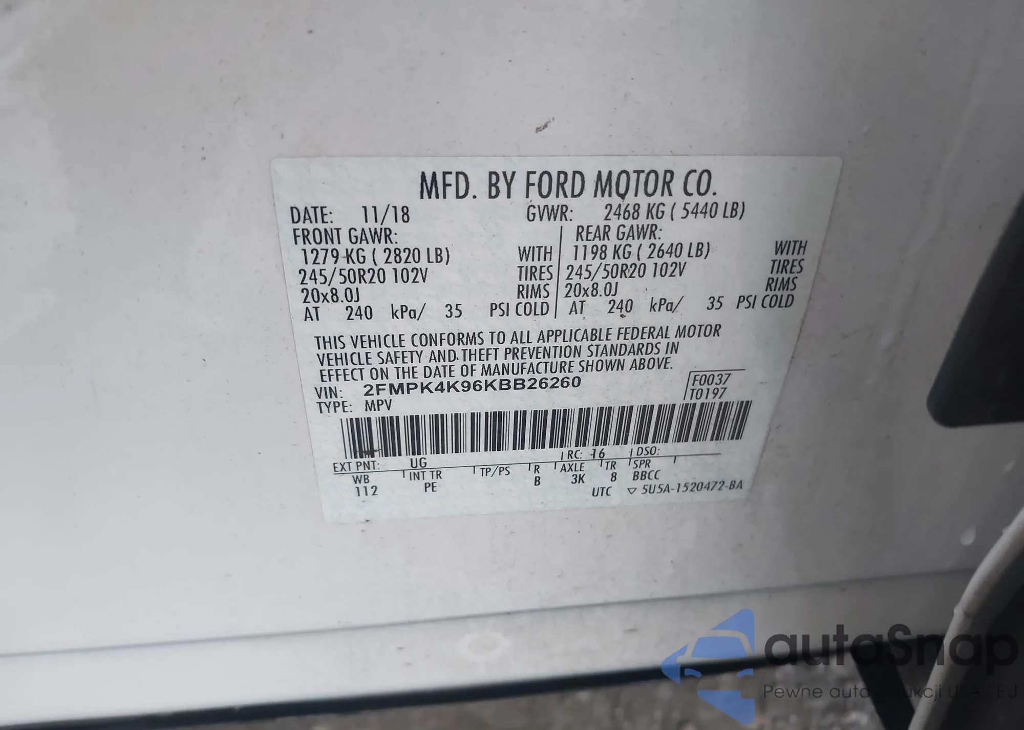 LOT: 42320973 VIN: WAUFNCF5XJA091433
