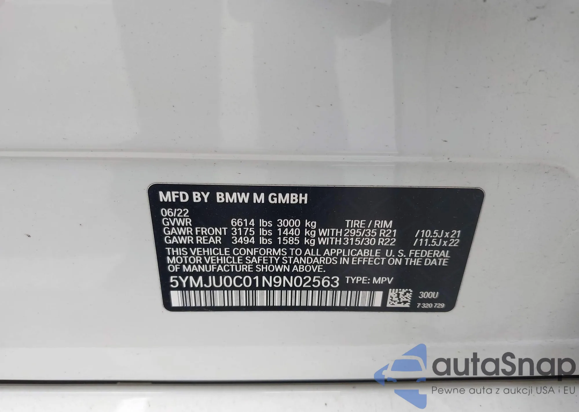 • VIN 5YMJU0C01N9N02563