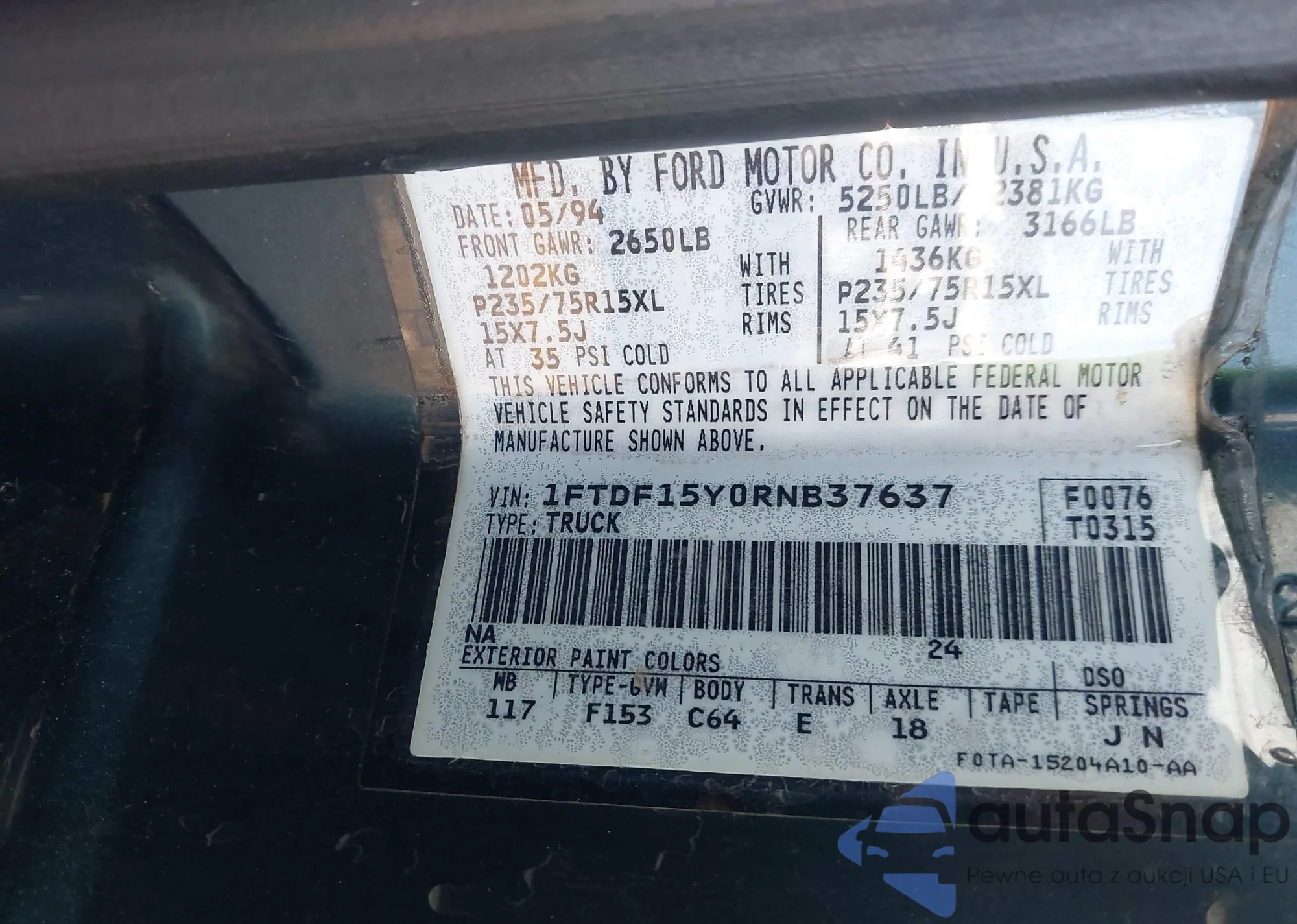 • VIN 1FTDF15Y0RNB37637