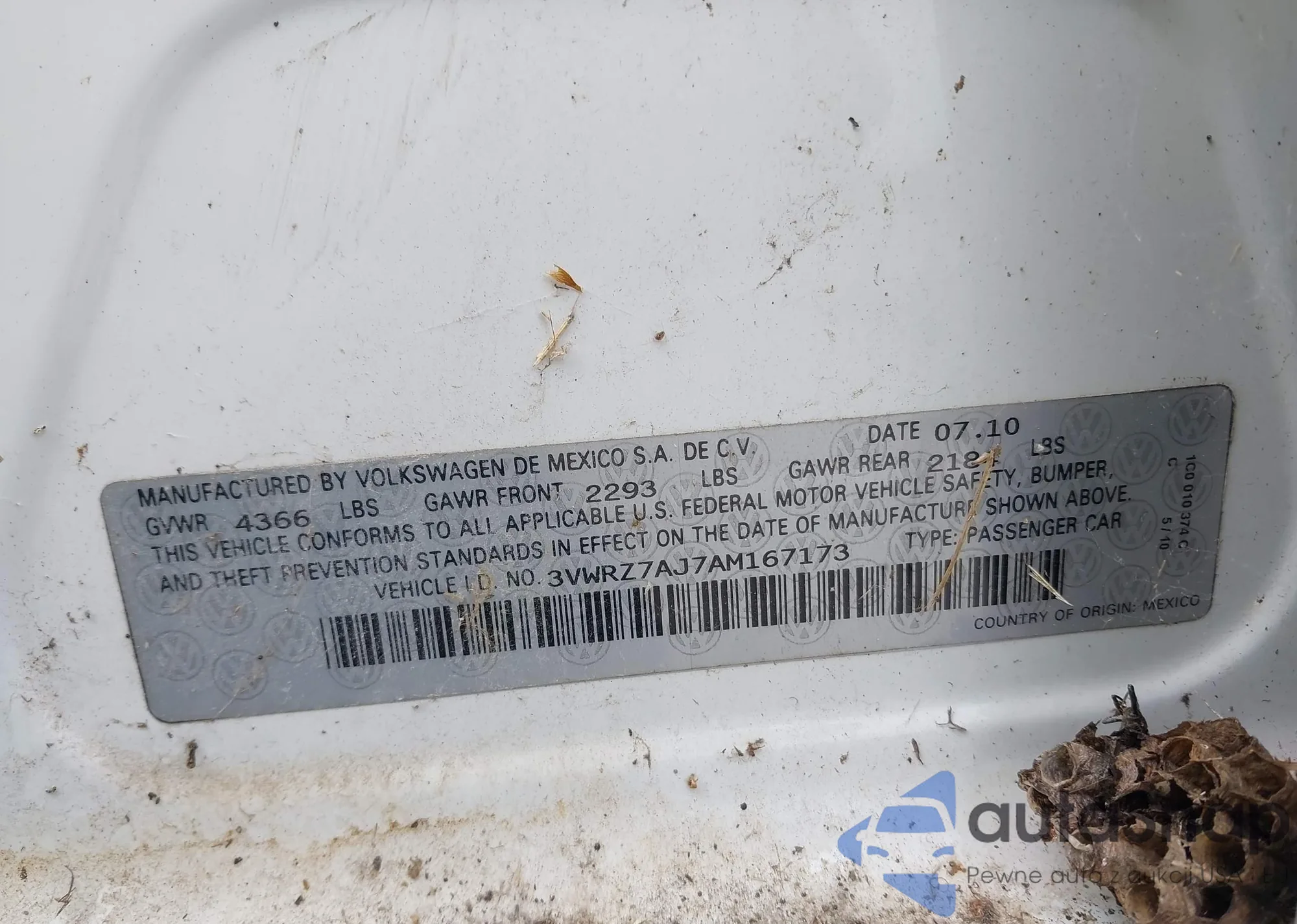 • VIN 3VWRZ7AJ7AM167173