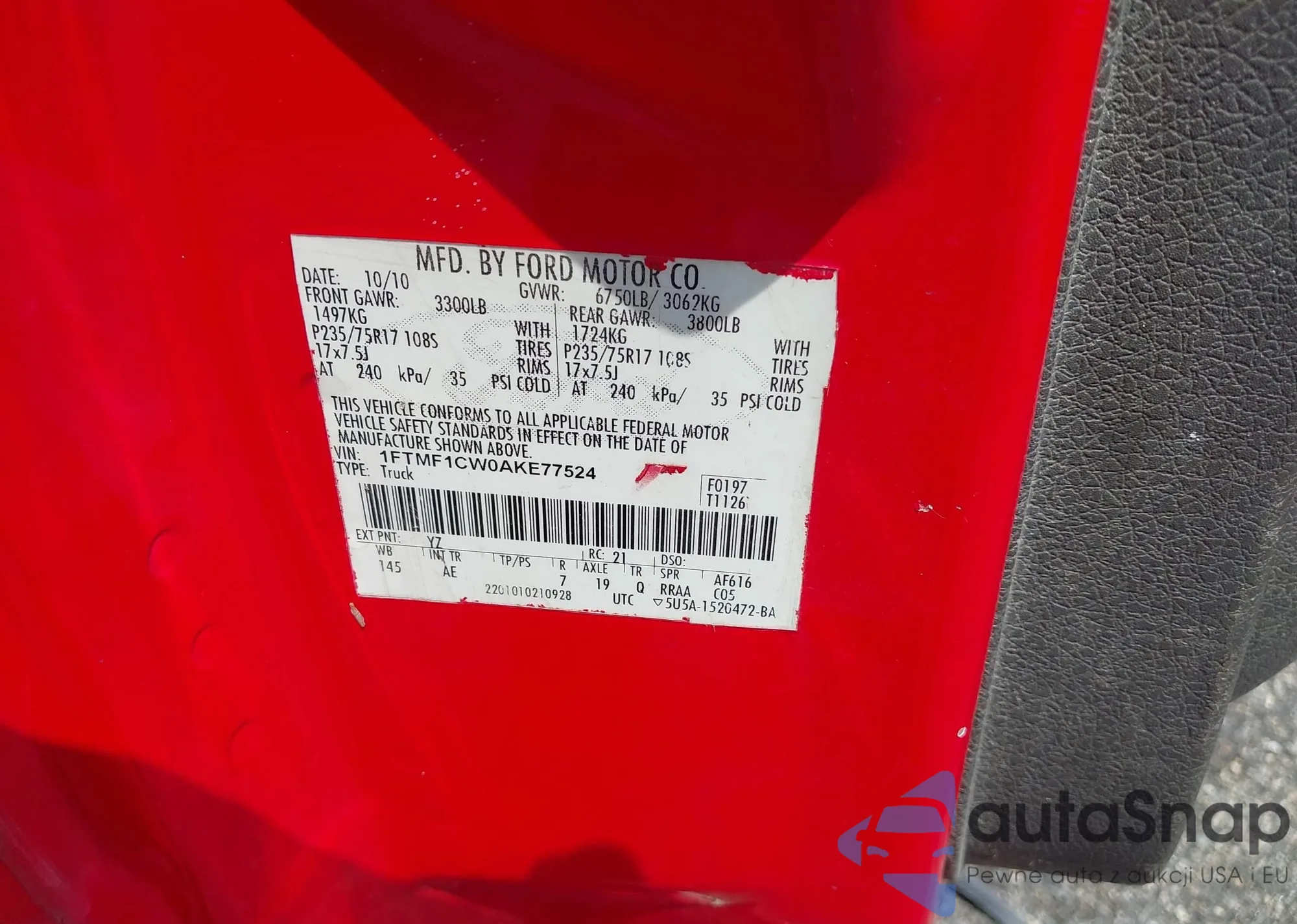 LOT: 42731653 VIN: 1FTMF1CW0AKE77524