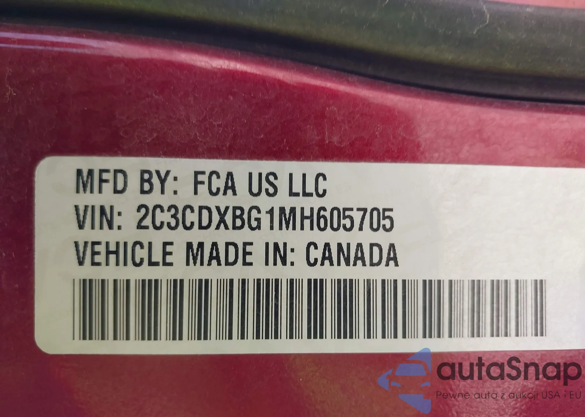 • VIN 2C3CDXBG1MH605705