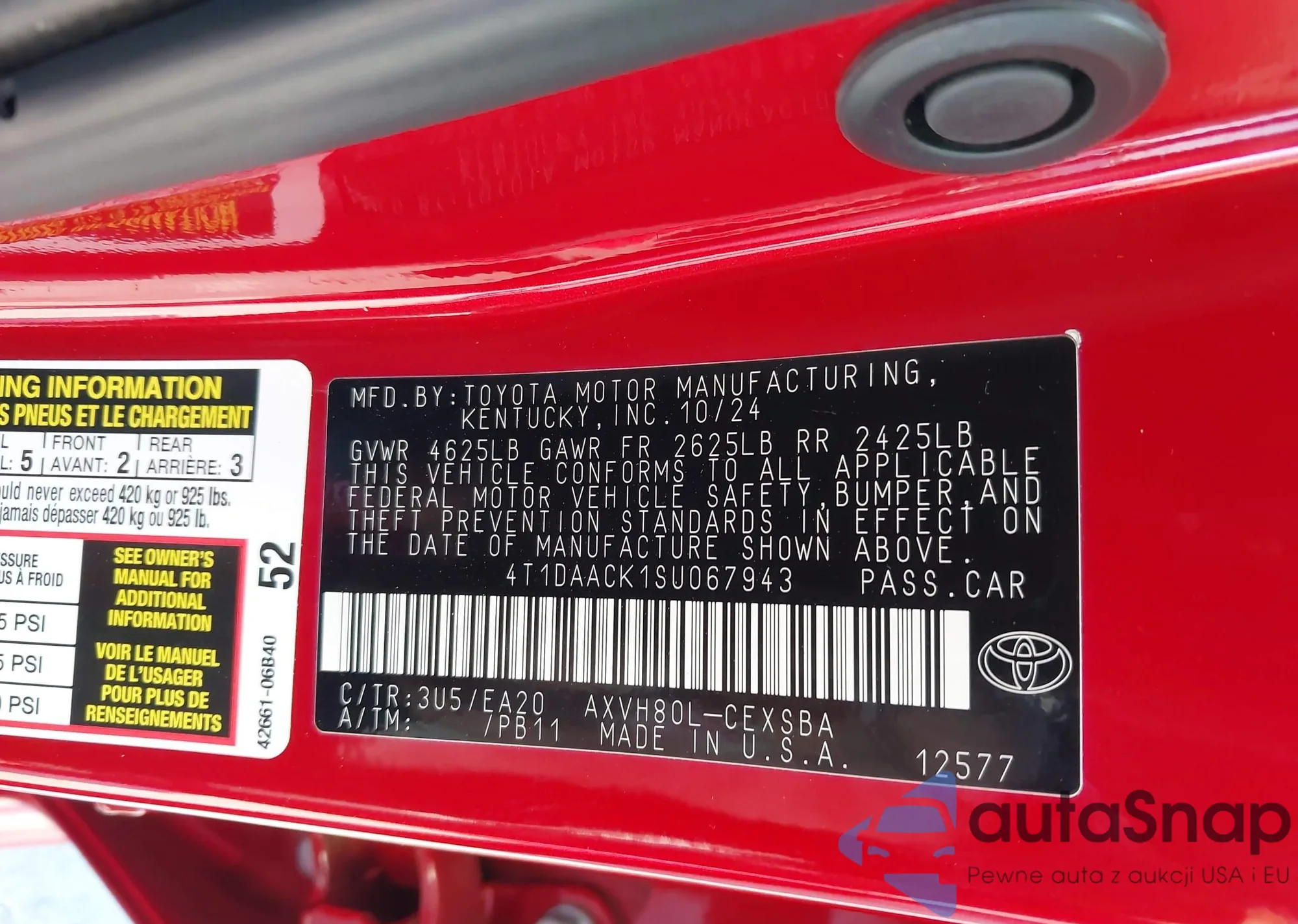 LOT: 43205964 VIN: 4T1DAACK1SU067943