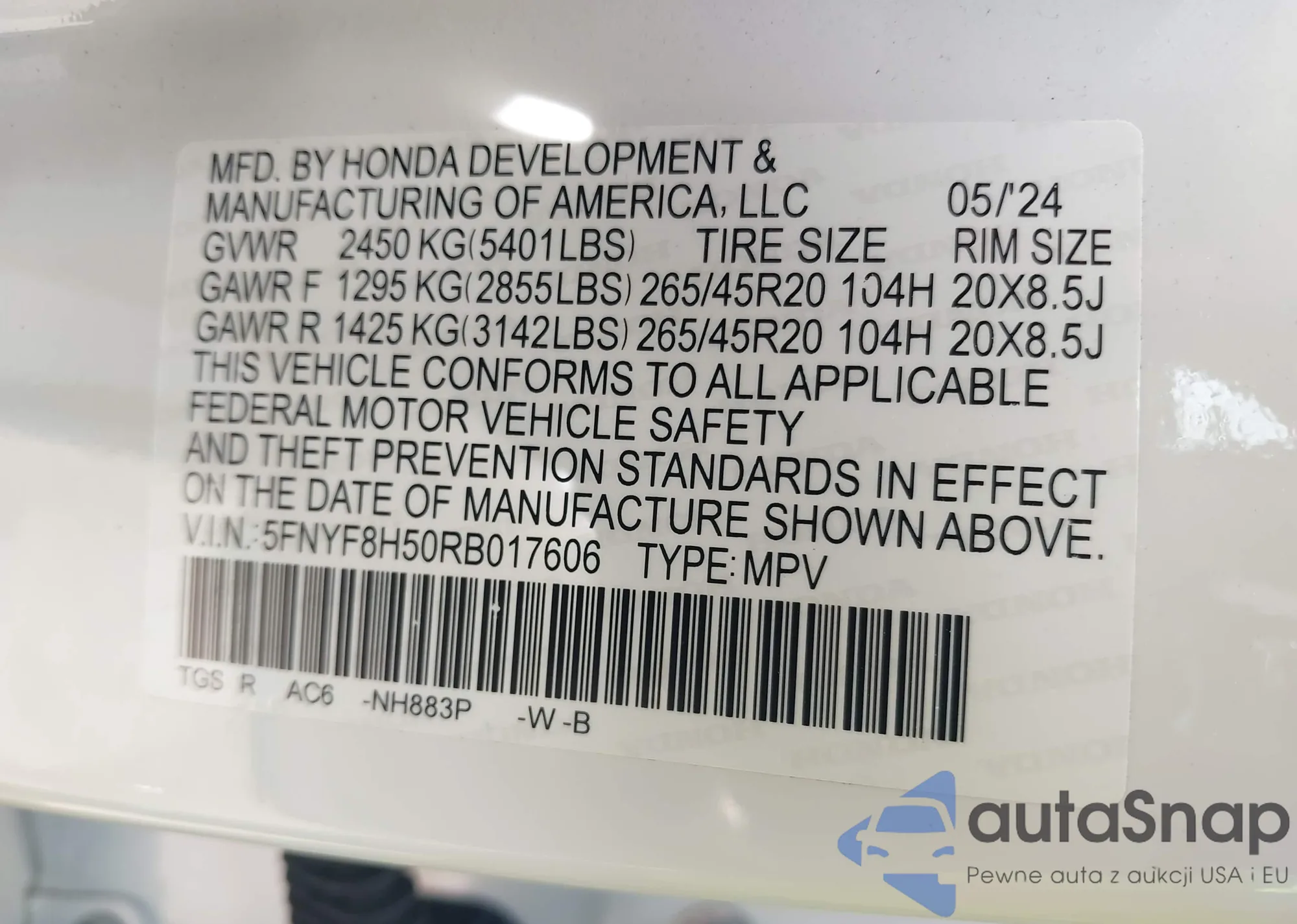 • VIN 2HKRS6H91SH813330