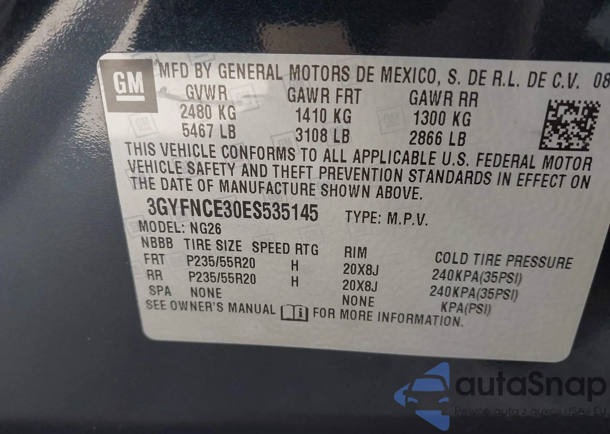 • VIN 3GYFNCE30ES535145