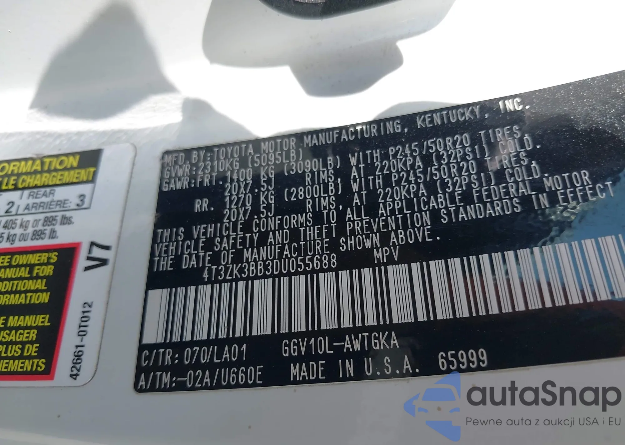 • VIN 4T3ZK3BB3DU055688
