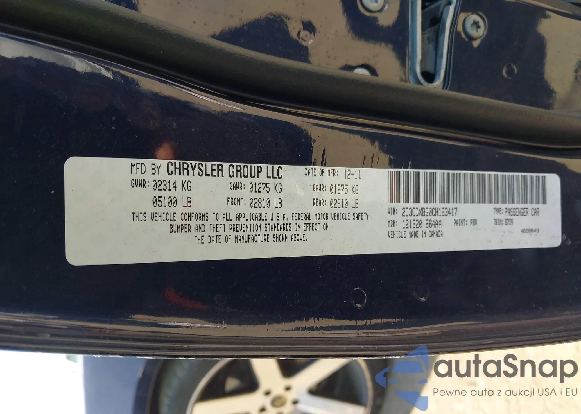 LOT: 43281481 VIN: 2C3CDXBG0CH163417